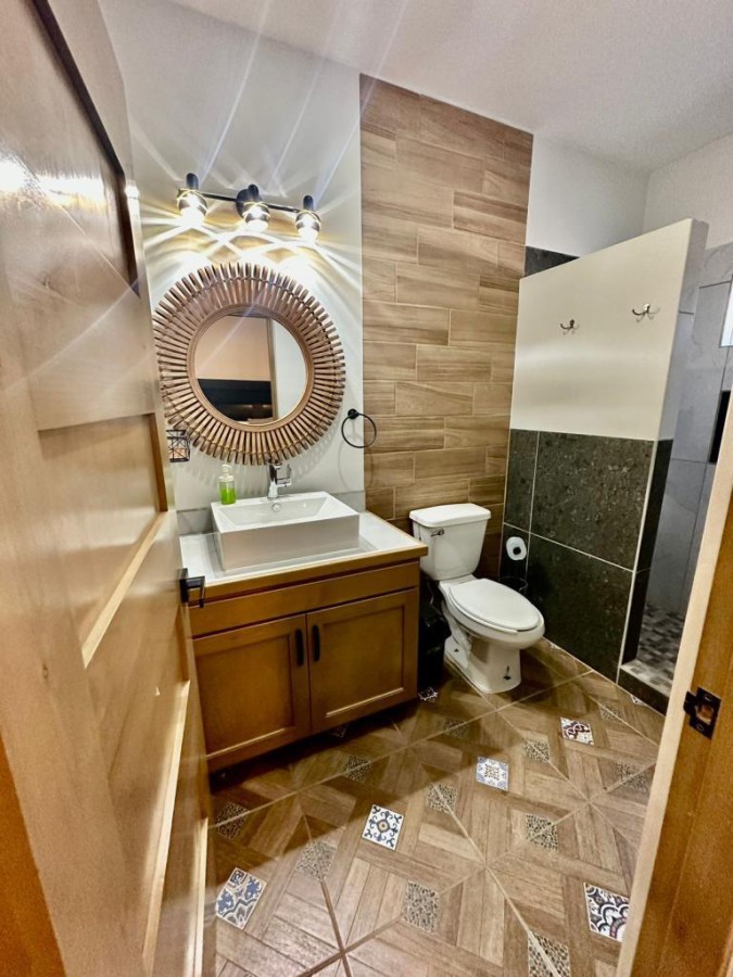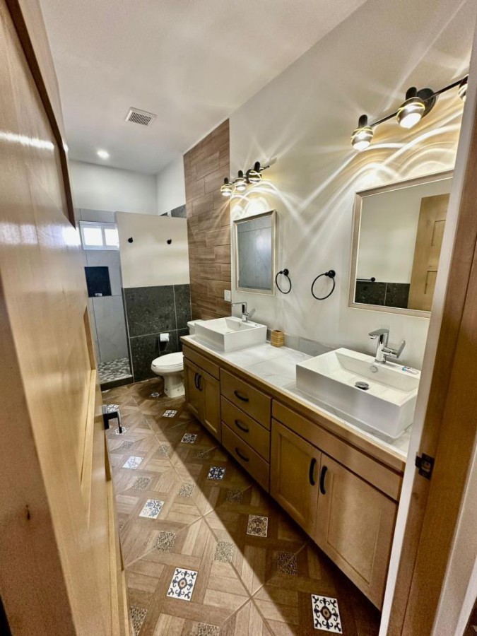 With contemporary architectural finishes, newly built, house with 3 bedrooms in the house and a separate bedroom with independent access outside, fully furnished...