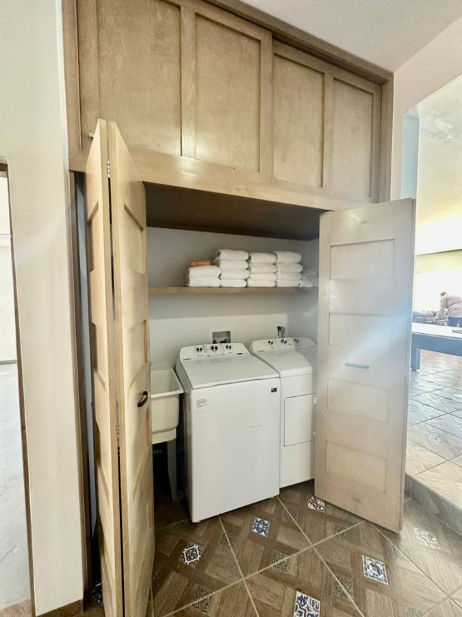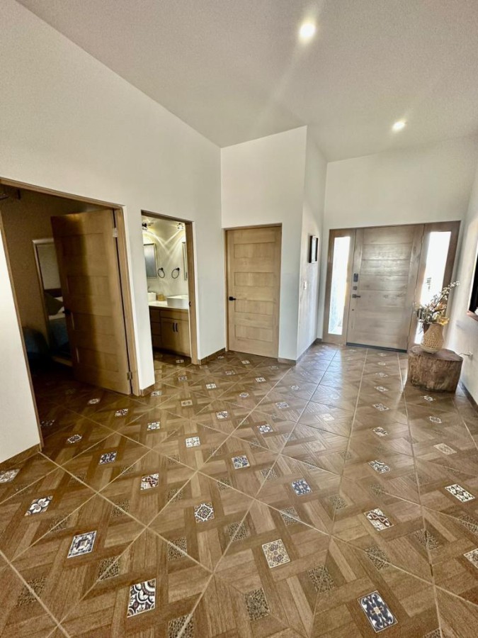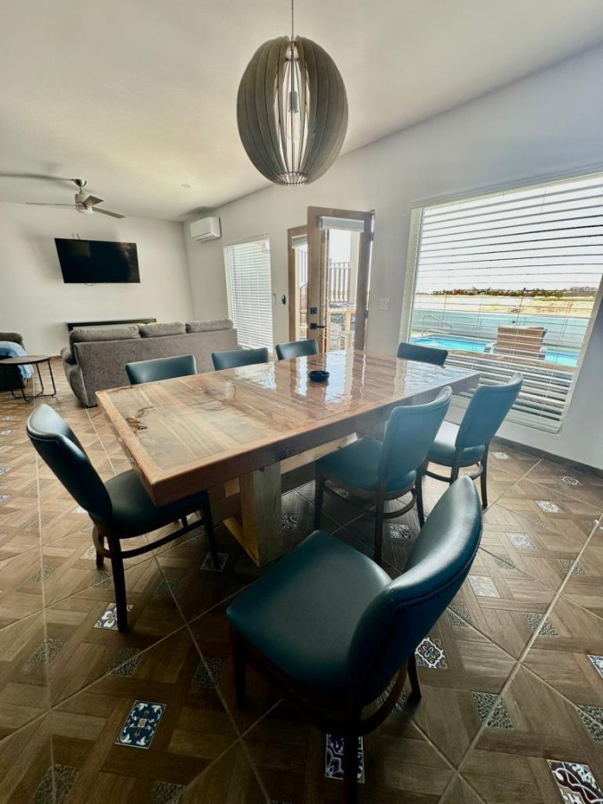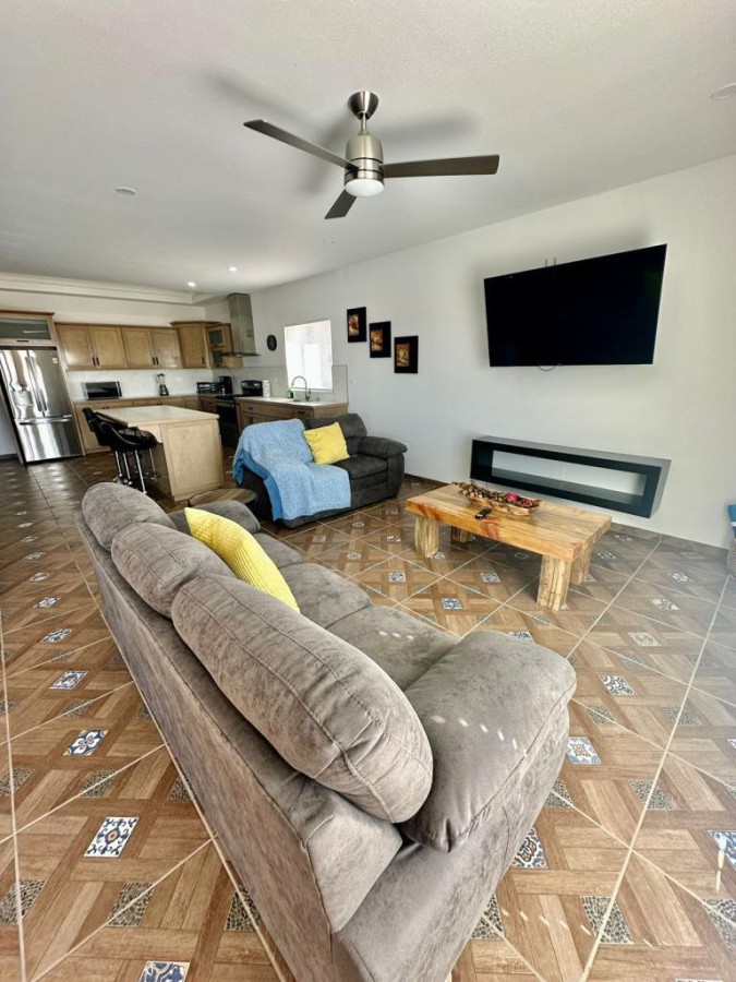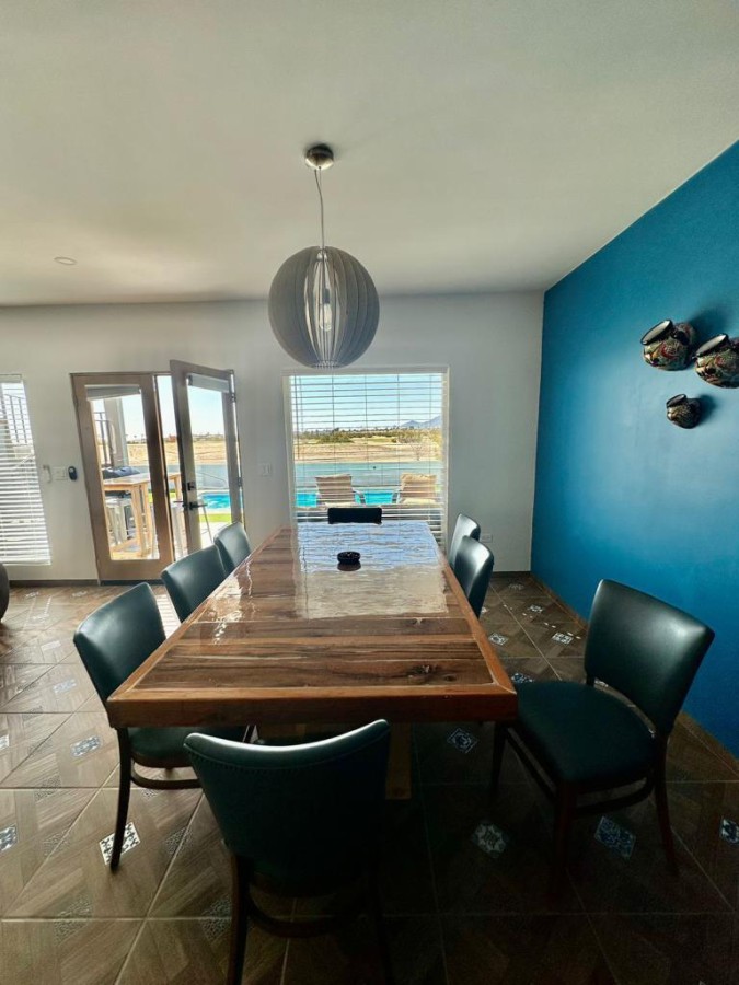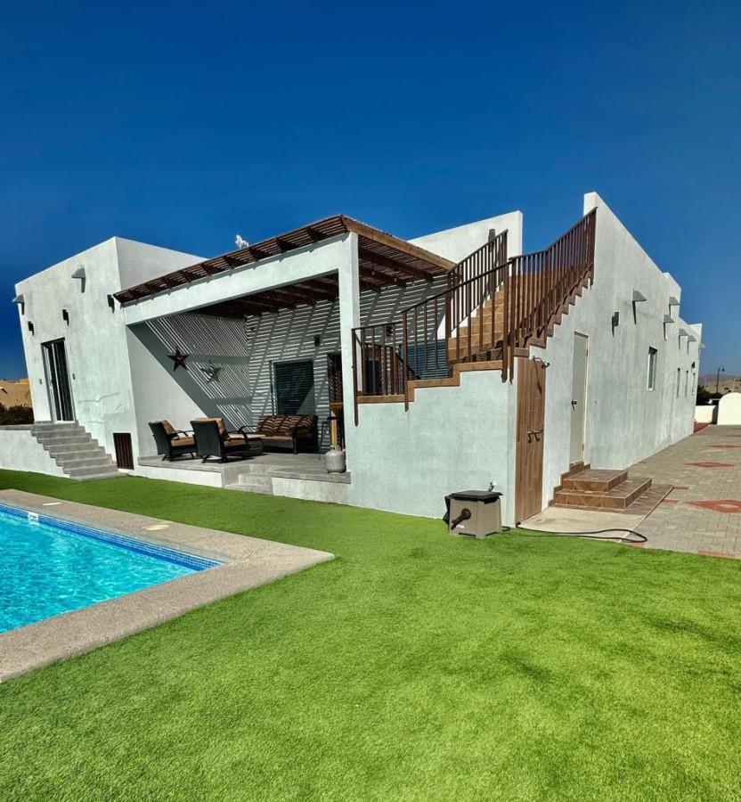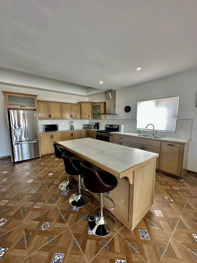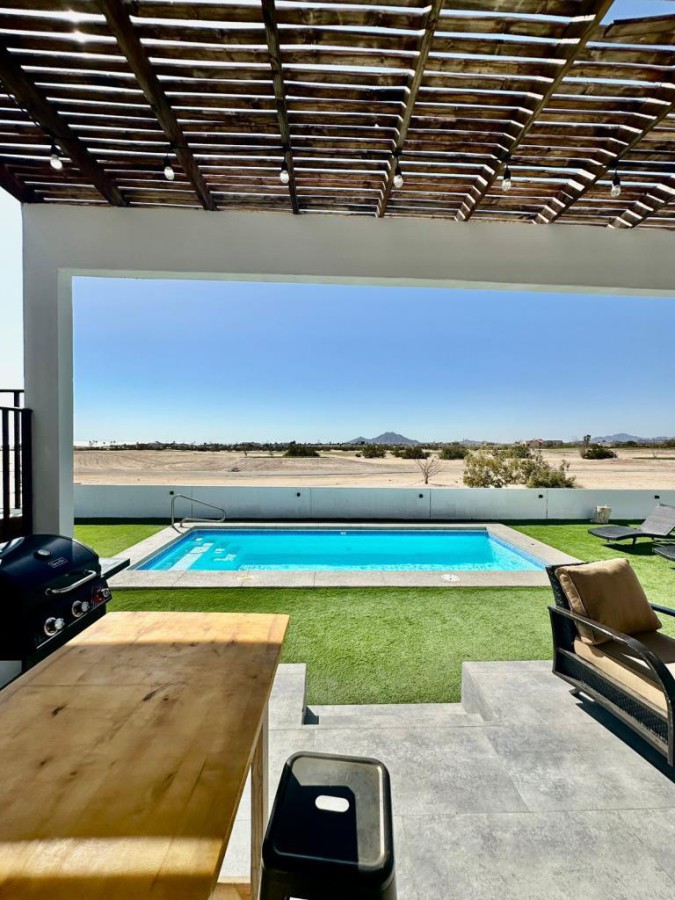 With contemporary architectural finishes, newly built, house with 3 bedrooms in the house and a separate bedroom with independent access outside, fully furnished: modern kitchen with stainless steel appliances, living room, dining room and bedrooms, washer and dryer area inside the house, garage for two cars, patio with synthetic grass, swimming pool in the backyard, and large terrace on the roof, this home has a perimeter fence, located in El Dorado Ranch in La Ventana del Mar, a gated friendly community with golf course and clubhouse.