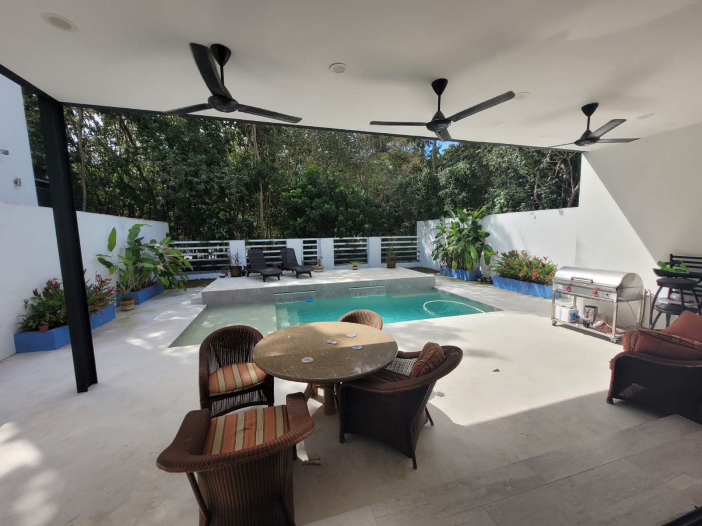 the house. The living room opens to the garden, with a cover terrace, a private pool in chukum, a