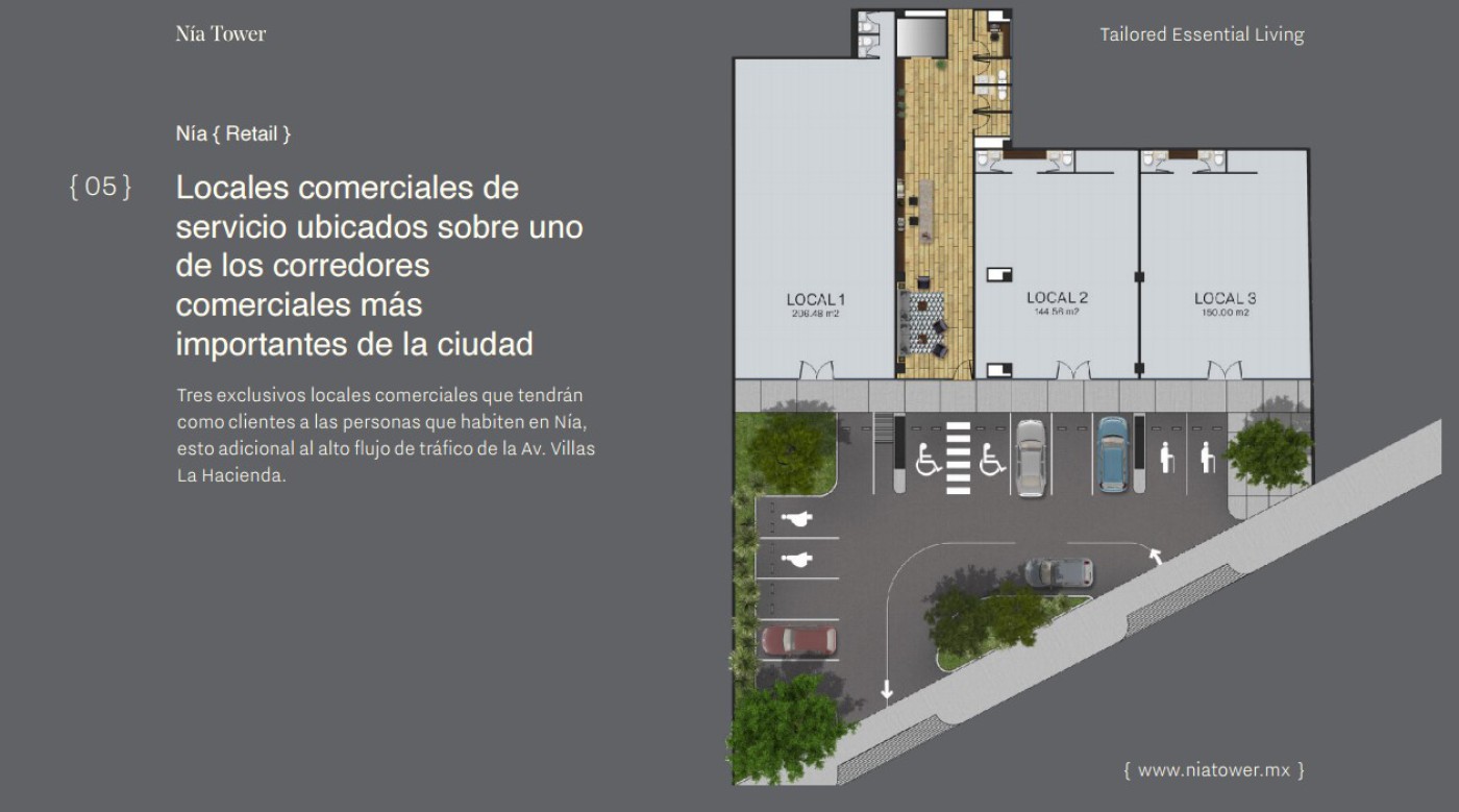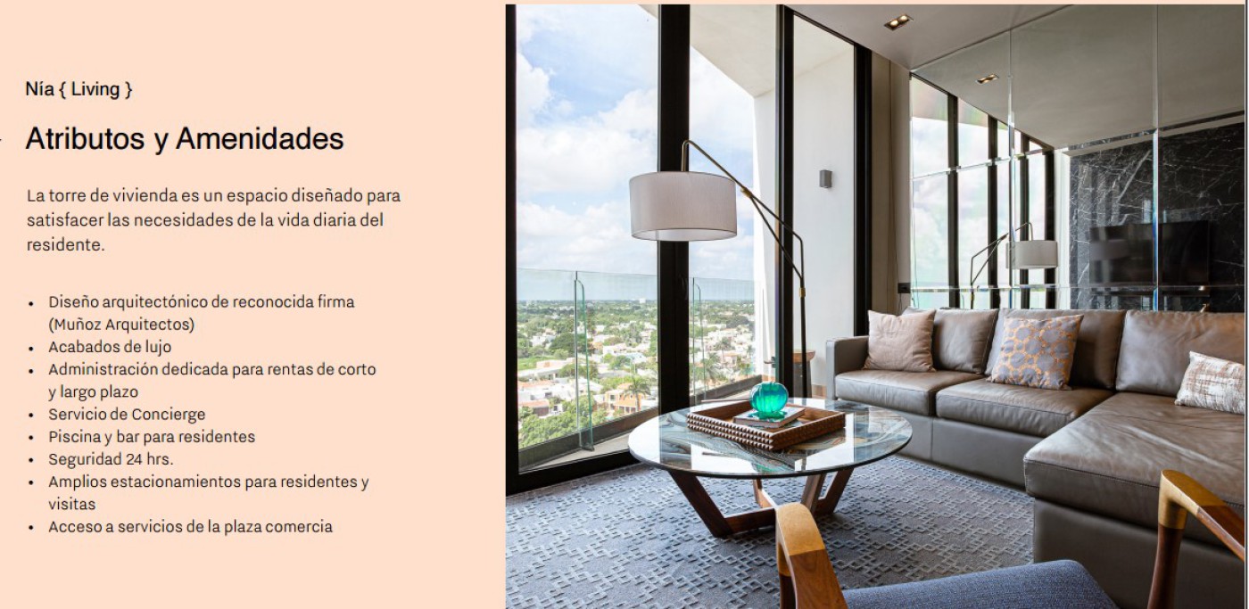Luxury apartments with access to commercial spaces and a business center await you. Nía Tower is a multifunctional tower divided into three essential areas. It is an innovative mixed-use complex that combines commercial spaces, ideal apartments for living or investing, and a modern business center.