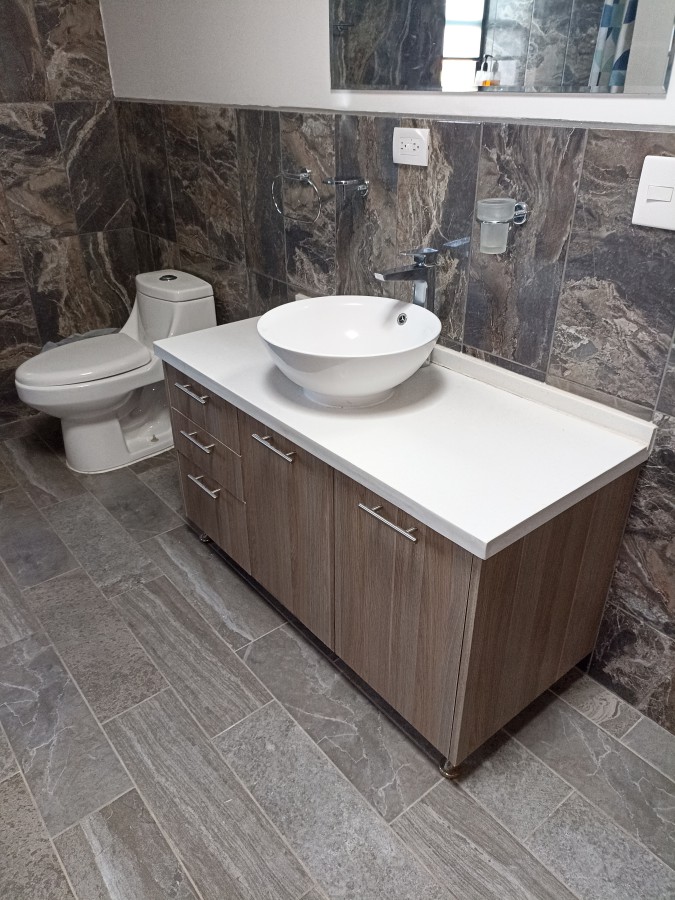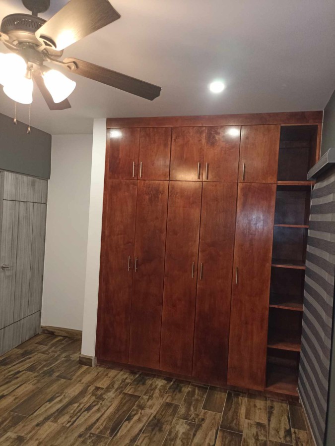 with closets, main room with walk in closet and bathroom ,3 full bathrooms, tv room upstairs, Tank of water 5 thousand liters under ground with automatic bomb system