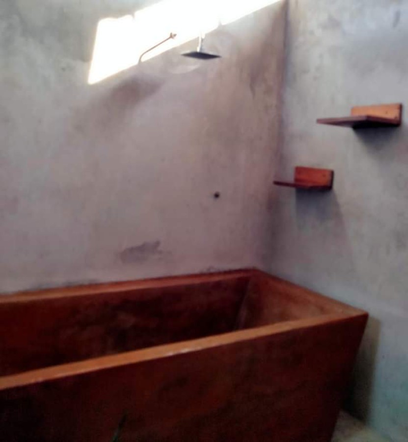 bathtub, led mirror , plants,