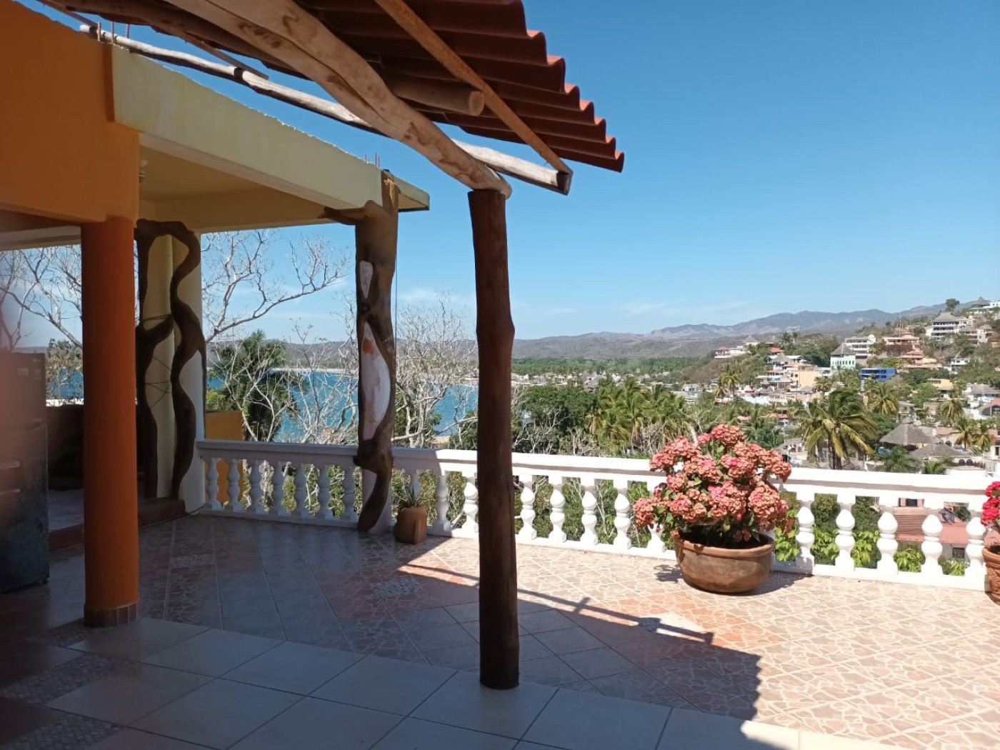 4,000 Square foot 3 story home. Can be three apartments. Each floor has a kitchen and bathroom or 2. 5 bedrooms, wonderful views of the whole town and the beach. Located in a small town of 3000 people not far from Manzanillo and 200 km south of Puerto Vallarta on the Pacific Ocean.