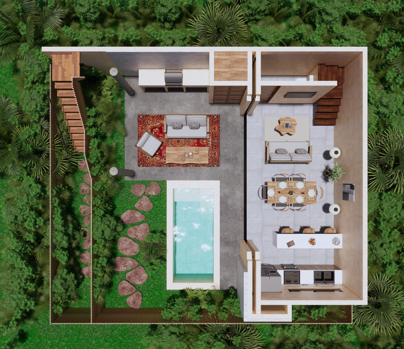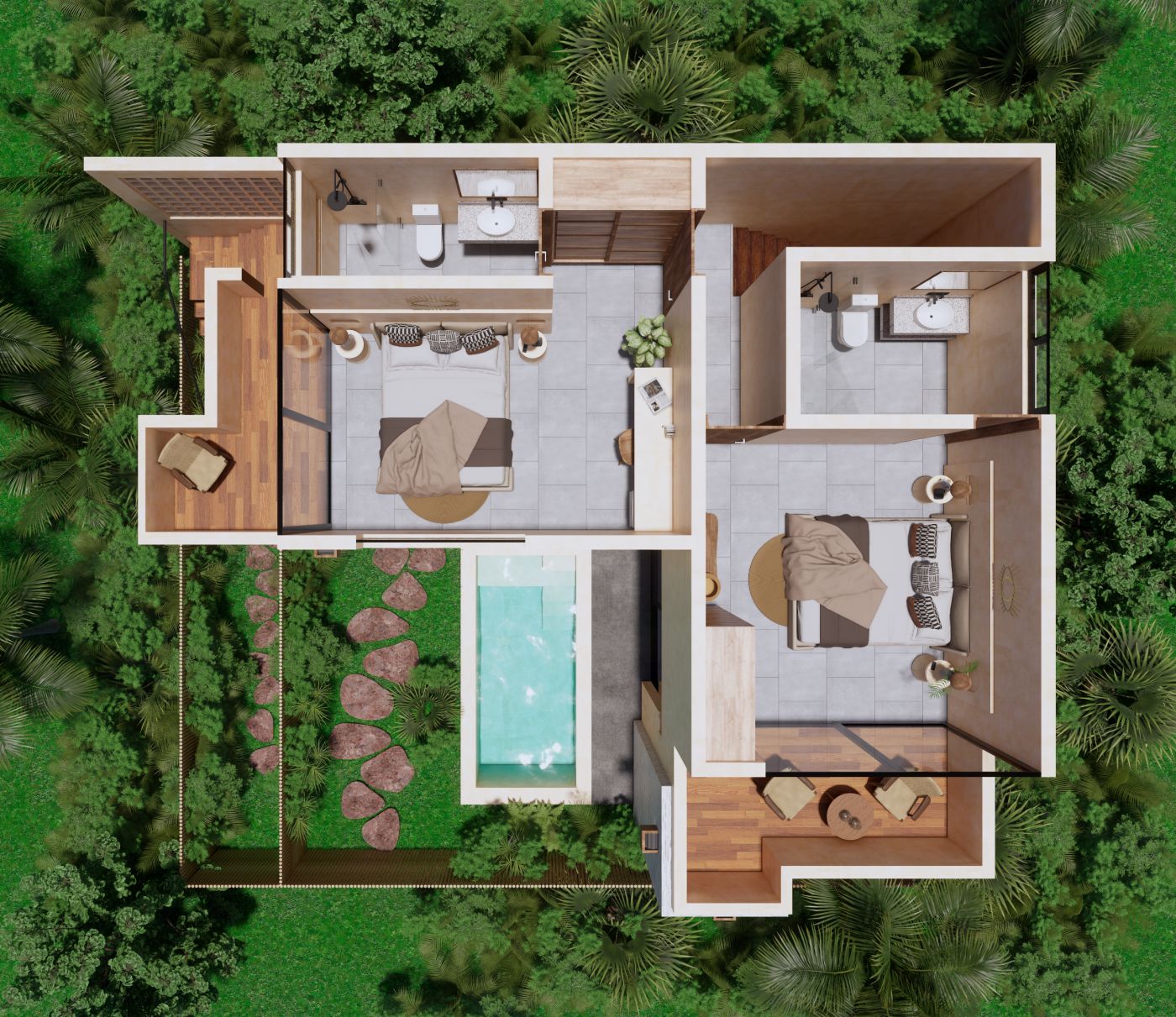 garden and private pool