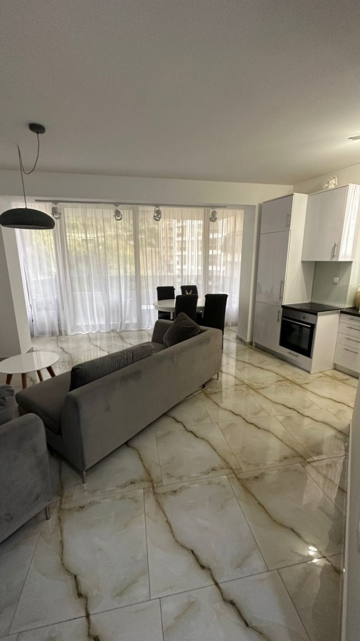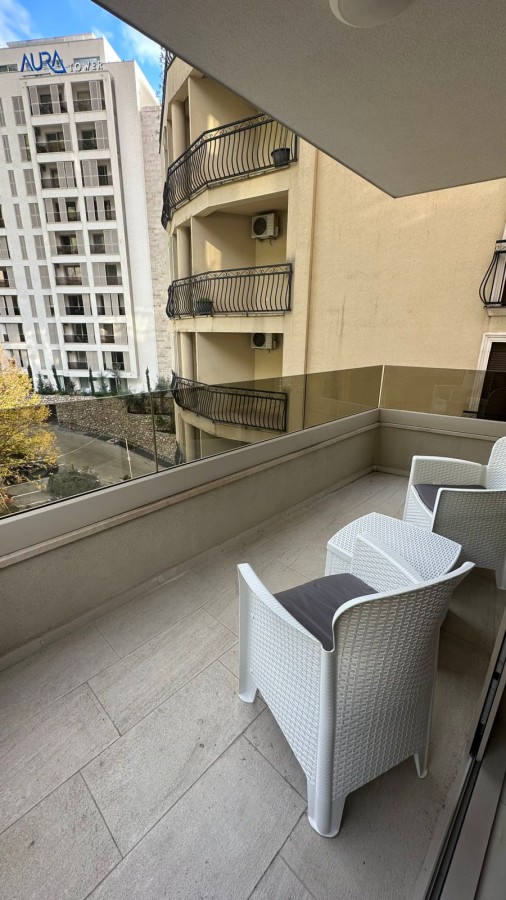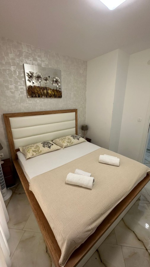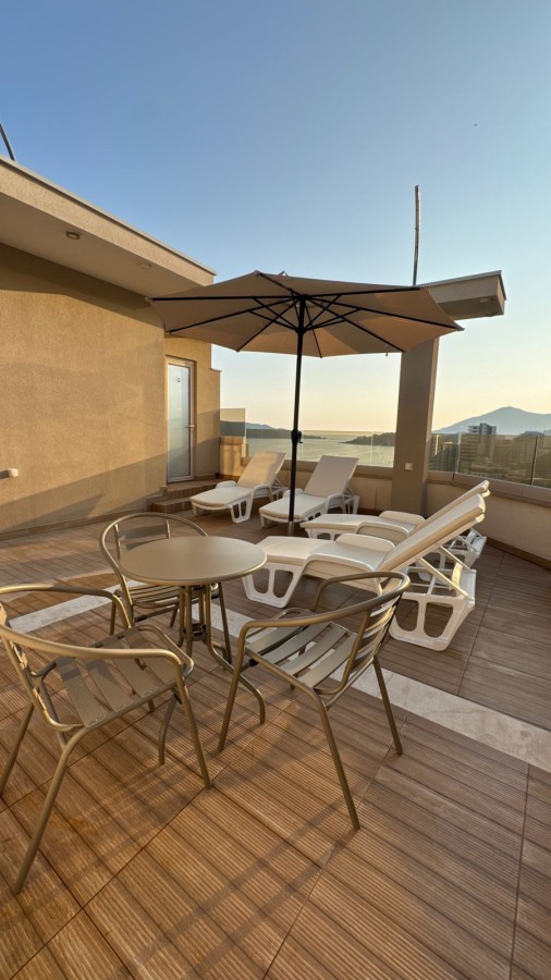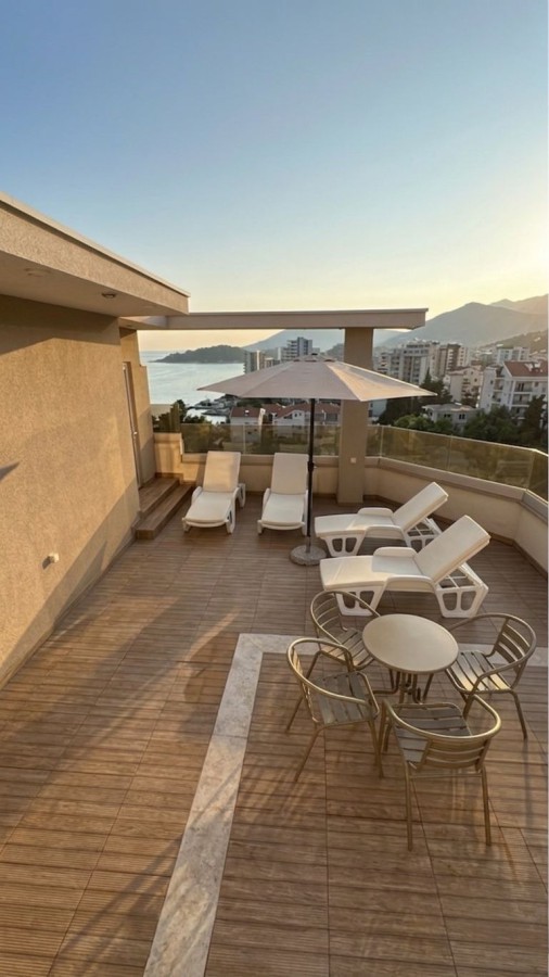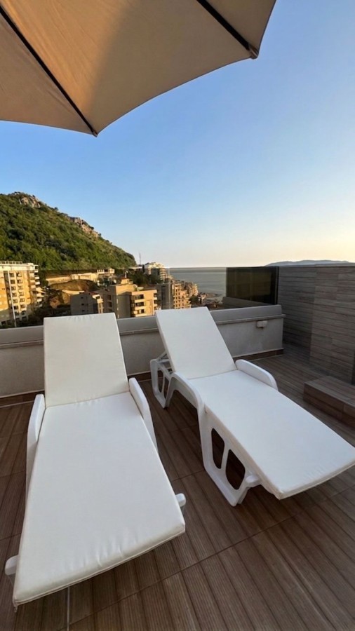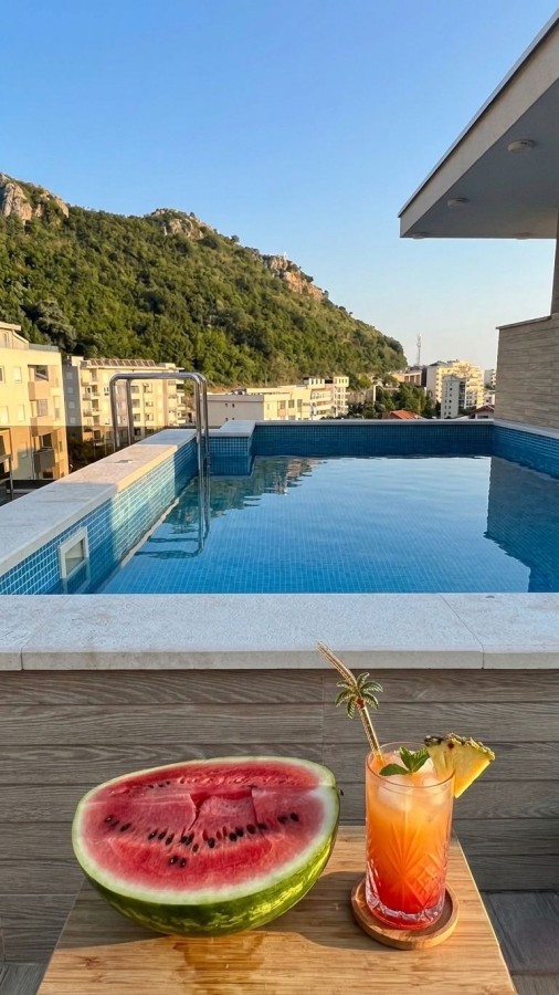 A modern 54 m2 apartment is available for sale in the coastal village of Rafailovici, just 250 meters from the sea. Located on the second floor of a seven-story residential building, the property features a private rooftop relaxation area with a swimming pool and panoramic views of the Adriatic.