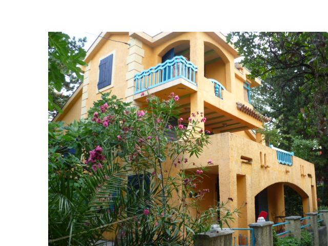 Jewel with own beach This unique property impresses by its exquisite south facing front line location with direct sea access and own peace of beach. The recently completed villa presents charming mix of Mediterranean and Moroccan style. The first floor consists of an entrance hall, a large living area , a dining room and a kitchen with romantic breakfast area on the terrace. There is also a storage and guest toilet . The first floor offers three bedrooms, with en suite bathroom and terraces. Finally, third floor offers one smaller bedroom and master bedroom with Jacuzzi and own terrace which provide spectacular view over the bay and mountain` s. The property also includes outdoor barbeque space and nice size of own concrete beach. Extras: windows with wooden frames and shutters, air conditioning , nice marble in the whole house. All details of this property are made from top quality materials. They have building permission for another small villa under new detailed urban plan! House Surface 188m2 Plot surface 444m2 Bedrooms 5 Price1,1mln