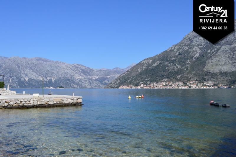 For sale ruin – old stone house on very attractive location in the beautiful settlement of Stoliv, a place that still preserves the look of the Mediterranean as it once was. Location just 20 meters from the water edge, in front of which there is a small sandy beach and a large pier. Base of the ruin is 104 sqm, with a courtyard of 183 sqm. The house has building permission for ground floor + firs floor + loft. Beautiful view on Perast and Bay of Kotor.
