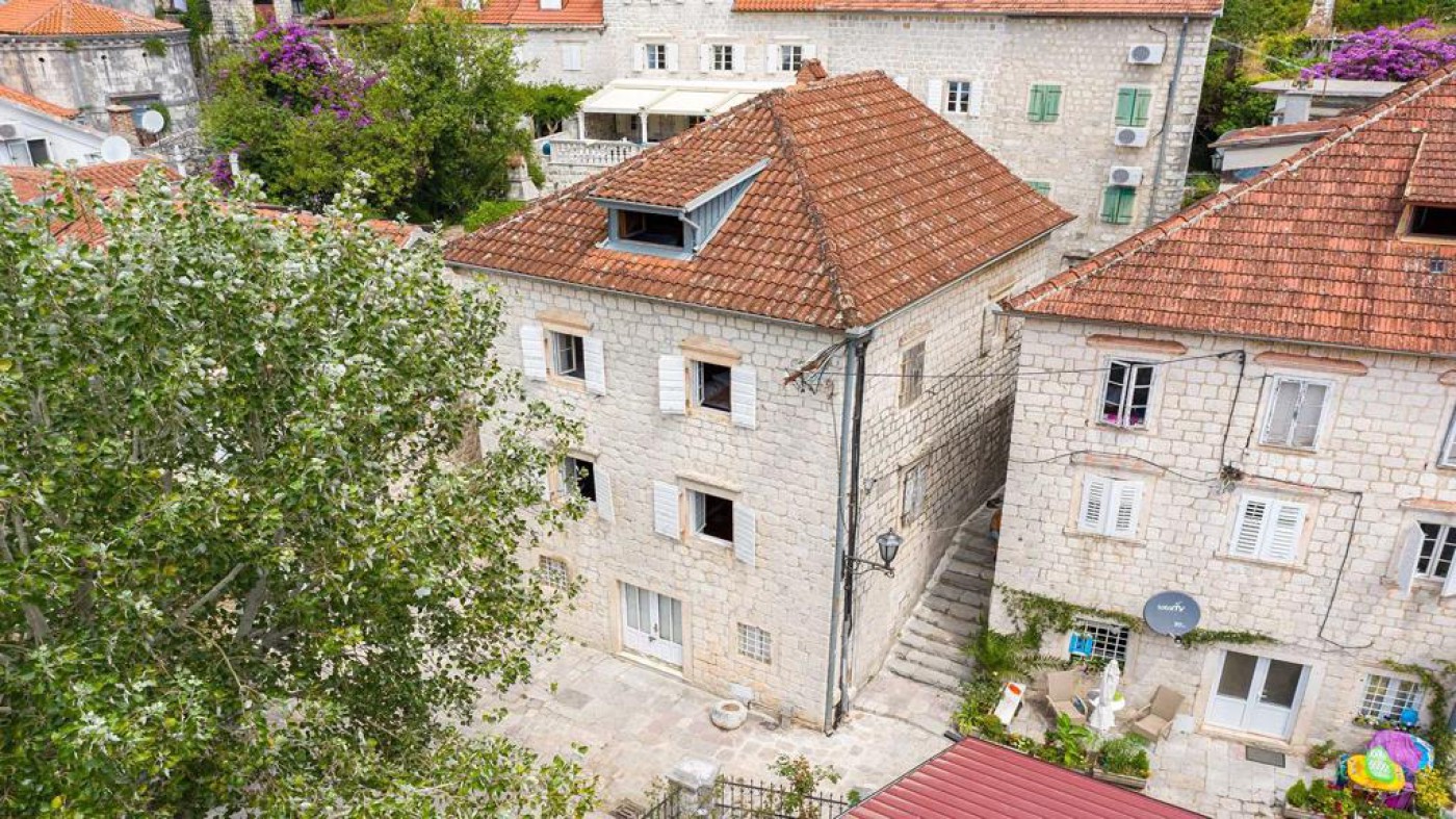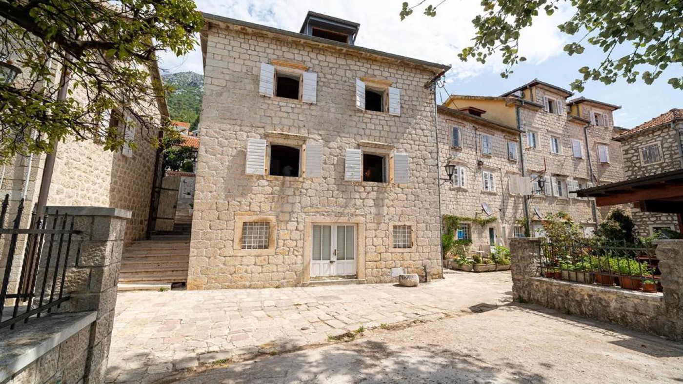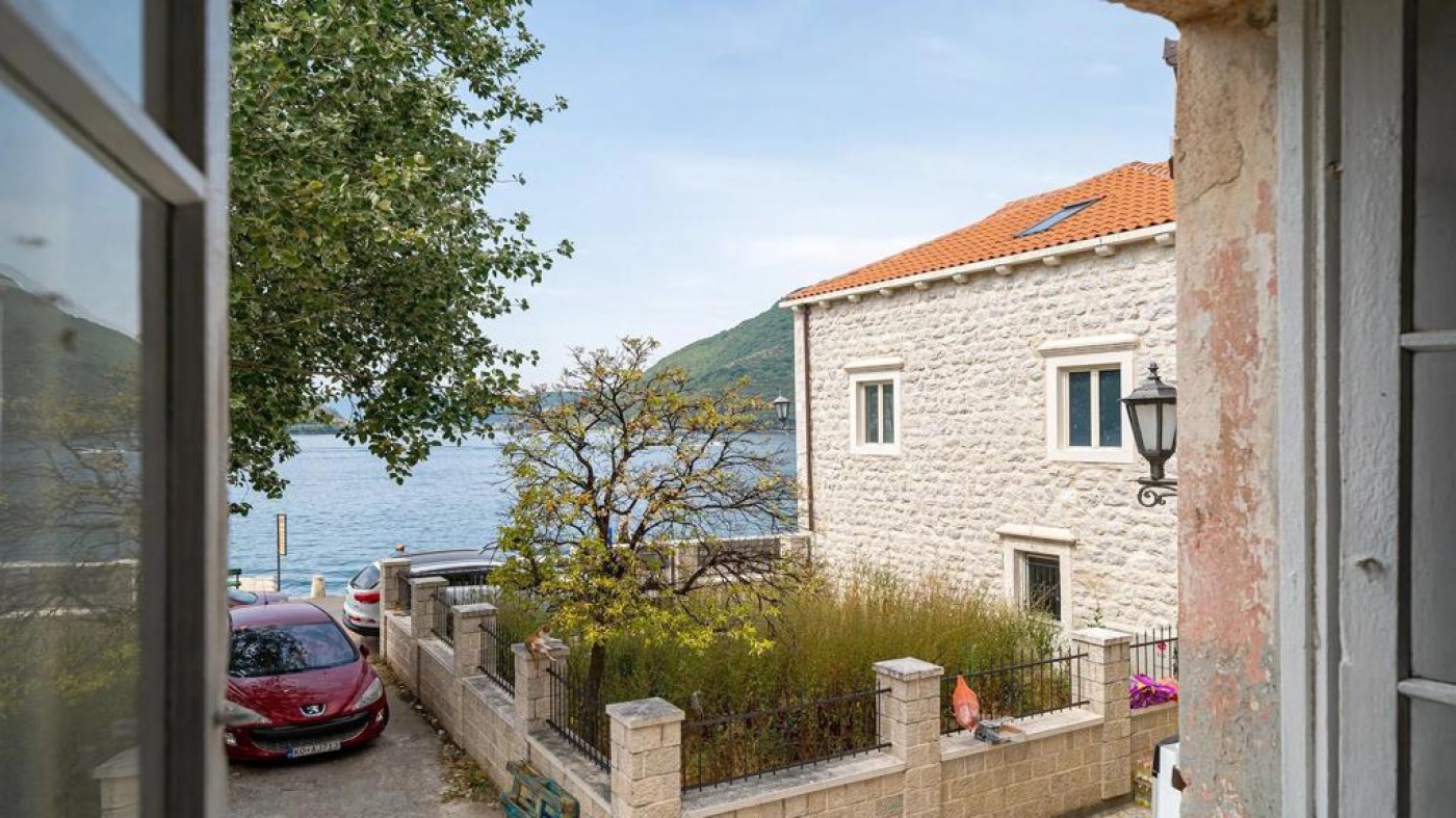 Historic waterfront house for sale, featuring stunning views of Perast area. This well-preserved stone