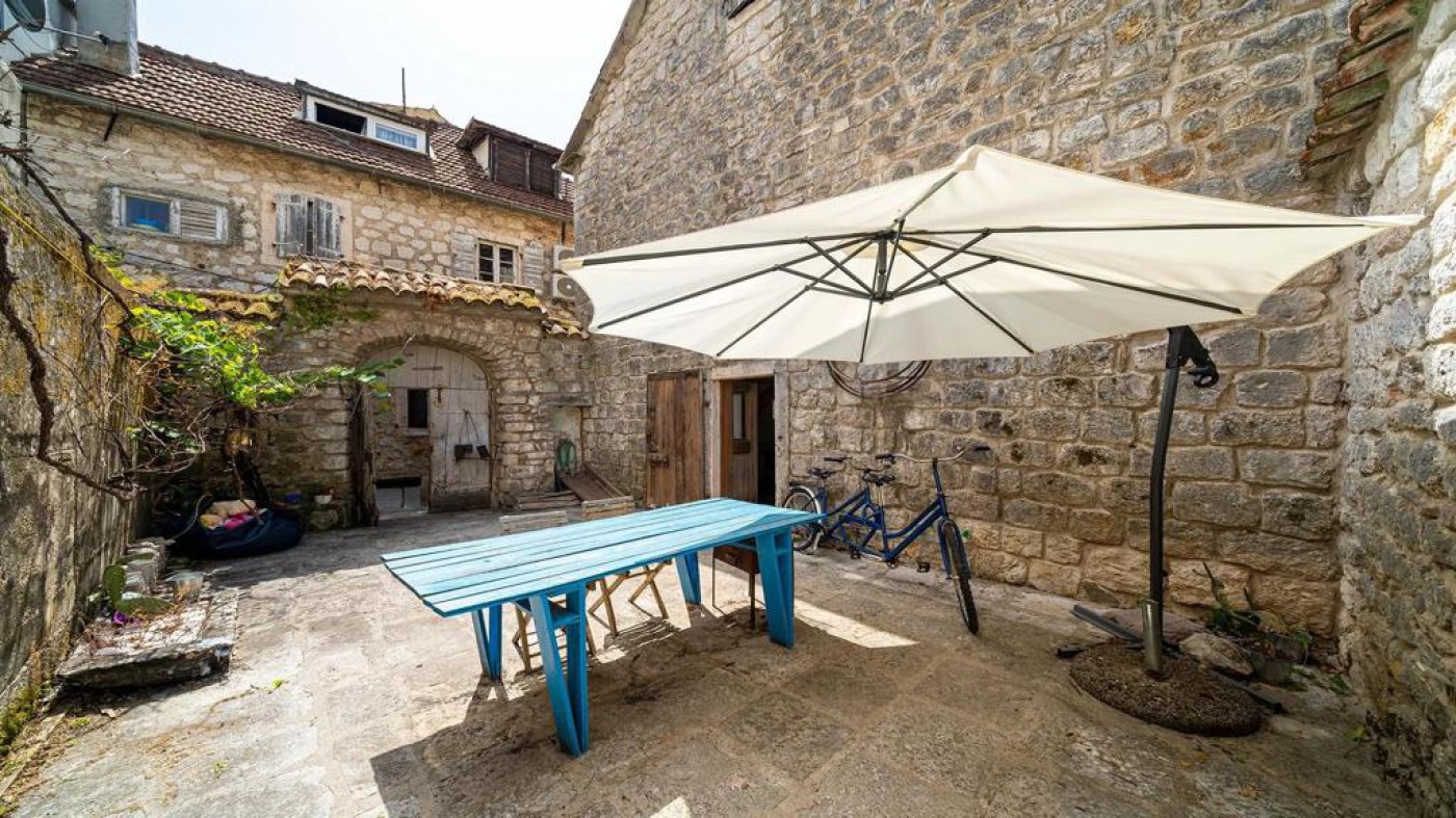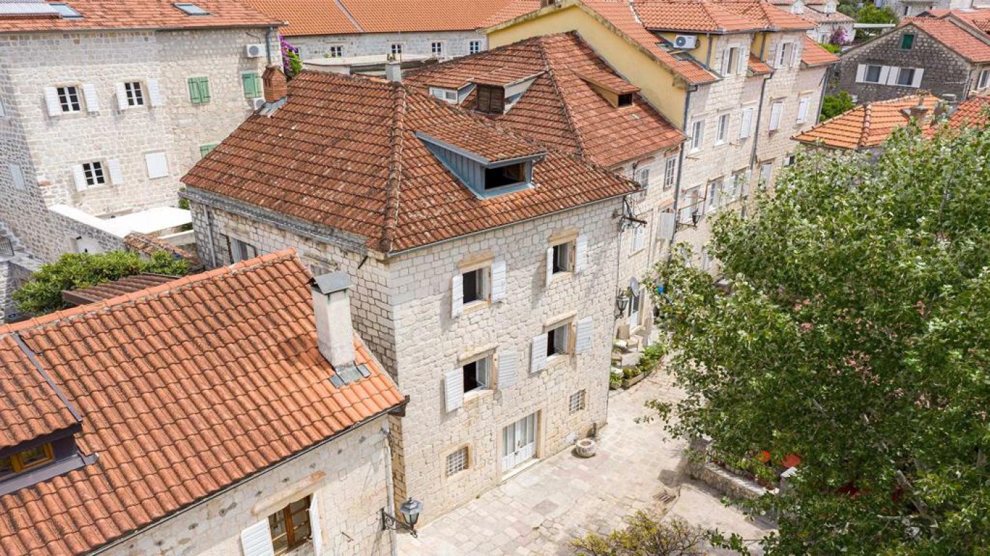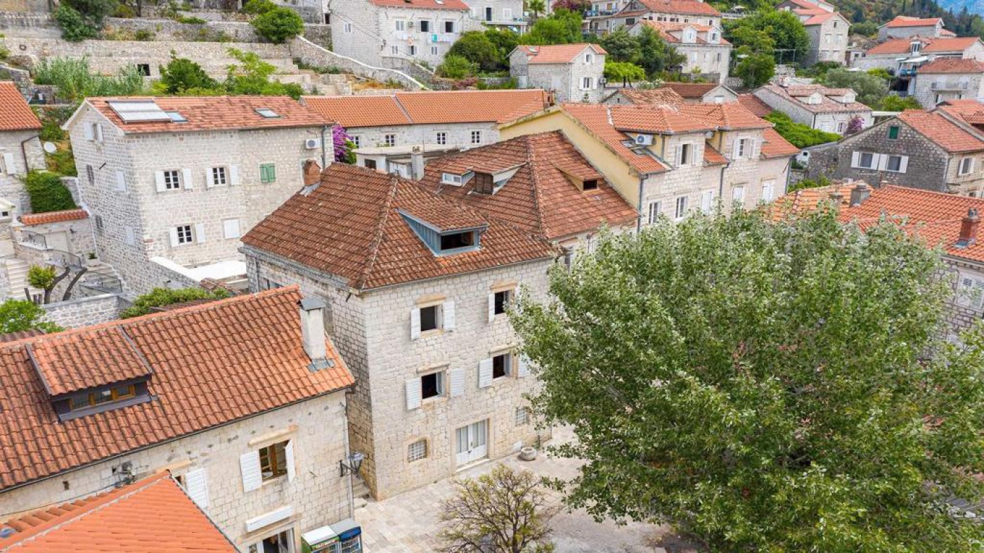 Historic waterfront house for sale, featuring stunning views of Perast area. This well-preserved stone
