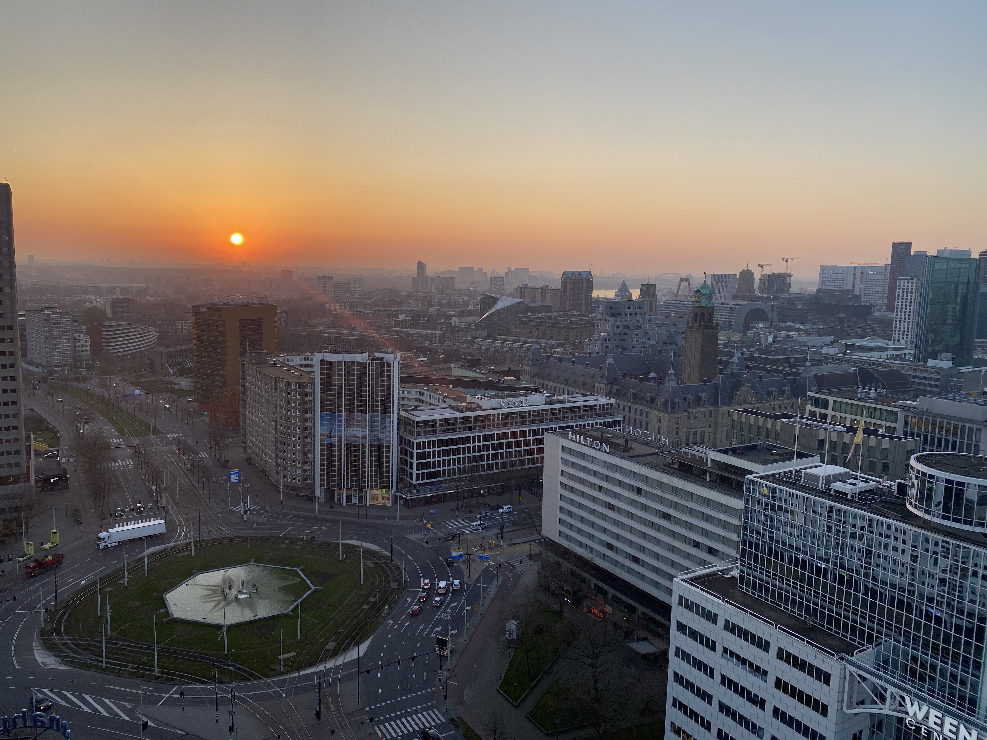 Netherlands , Rotterdam in city center the iconic weena tower with 31 floors we have on the 24 th floor a 152 m2 appartment 3 bedrooms with astonishing views all over the city and nearby Hilton and central station cinemas and many more and all amenities for a luxury and relaxed life.....modern with windows from up to down 180 degree views..must see to believe