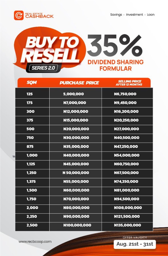 Plots of land buy and resell to earn profits of 35% or more