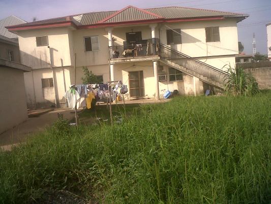 This is a two-storey building containing two flats/apartments. The first floor apt has three bedrooms, two bathrooms, a living room and eat-in-kitchen. The second floor has a master bedroom and master bath, two more bedrooms with two bathrooms. The house has also a store front which can easily be converted into a two-bedroom apt as it has showerbath and toilet. There is an empty plot inside the fenced compound with gated entry, large enough to build any number of storied apartments. The detached garage and driveway completes this goldmine in the making.