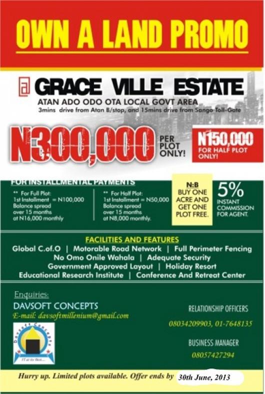 Get a plot of Land around Atan Area in Ogun for only N300,000/plots discount available on bulk purchases Cool Opportunity!!! Now selling. Buy a plot of Land at Atan area of Ogun State, 5km drive from Canaan Land Facilities and features Motorable road network Survey Papers Full perimeter fencing No omo onile wahala Adequate security Government approved layout Holiday resort Boarding school Conference and retreat center