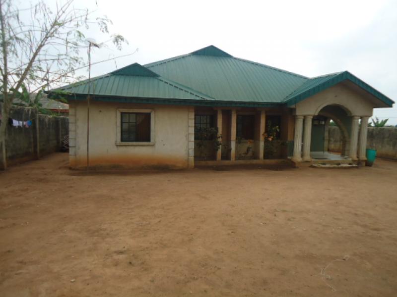 A well finished 3 bedroom bungalow all ensuit on a full plot of land measuring 682.525 . Fenced and gatted and 3 big shops at the front. Enough space in the compound for another building. Fully tilled interior(walls and floors). All rooms with wardrobes and ensuit bathrooms with water heaters. P.O.P ceiling, fitted kitchen, visitor`s toilet, boreh...