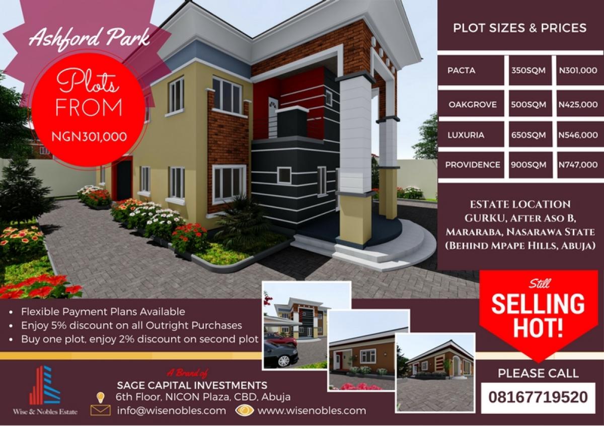 Affordable Plots Now Selling Hot in Abuja FCT. Limited Plots Available. 350SQM at N301,000 500SQM at N425,000 650SQM at N546,000 900SQM at N747,000 450SQM at 600SQM at
