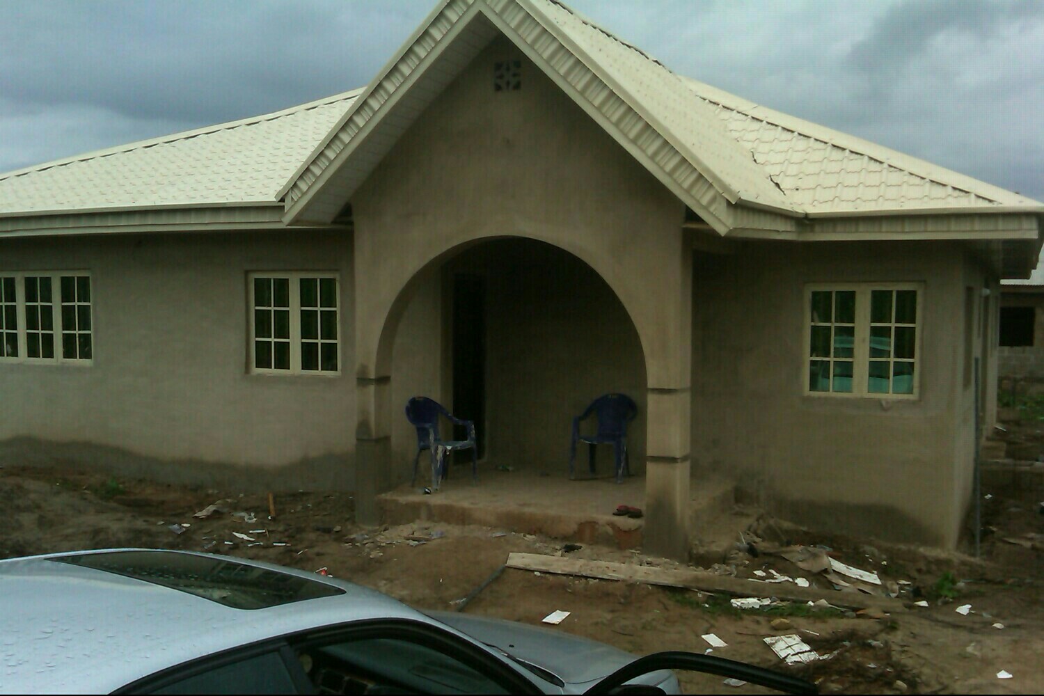 This is a 90% completed 4 Bedroom Bungalow (all en-suit). it contains 4 bedrooms, 4 toilets, a waiting room, a dinning and kitchen. The building structure is completed, plastered, roofed, floored. The wiring is done and the plumbing works also done, all with original first class materials. Done to taste. Yet undone is the POP Ceiling and the Marble tiles. Accompanying documents: Survey plan and deed of sales agreement. Located in a serene environment, well developed area with good supply of electricity and easily accessible.