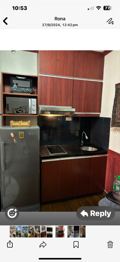 fridge coffee make grill toaster all the cooking utensils, has a beautiful balcony over looking