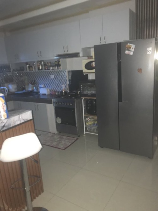 3-bedroom, 3-bathroom house with a large kitchen, dining room, living room, and all major furniture included. Each bedroom has an air conditioner and is spacious, with the master bedroom very large. The property includes a dirty kitchen, water tank, and a large carport. There is also a separate small house with one bedroom, bathroom, kitchen, and living room. All this sits on a 470-square-meter lot with a clean title and a great living area.