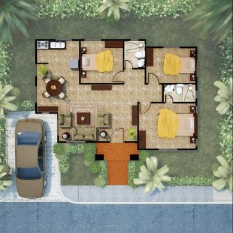 *Master`s Bedroom with toilet and bath *2 Bedrooms with bedroom Closets *2 Toilet and Baths with stylist bathroom fixtures *Ceramic-tiled flooring for Toilet and Baths *Kitchen counter with sink and Built-in cabinets *Deluxe ceramic floor tiles for kitchen, dining and living rooms *Carport *Lanscaped front Garden