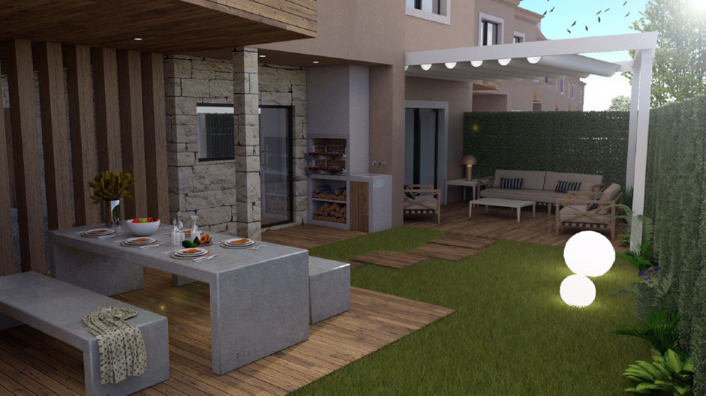 With 148 m2 of housing is complemented with covered parking for 2 cars and private garden with barbecue.