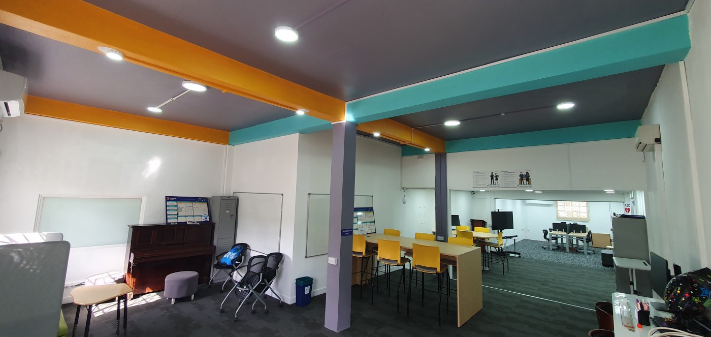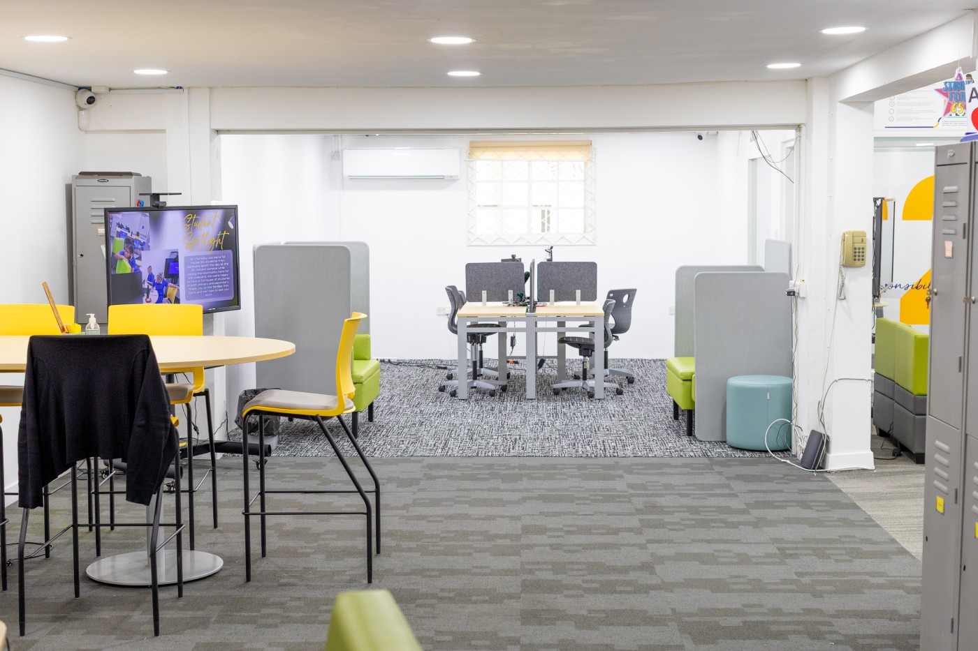 The ground floor offers four street-accessible retail or service spaces. The upper level provides flexible office or institutional areas, accessible via two internal staircases and four dedicated entrances. Facilities include nine individual washrooms (one with a shower), three kitchenette areas, and split-unit air conditioning throughout. The dual three-phase 415V electrical installation and a 50KW backup generator ensure uninterrupted operations.