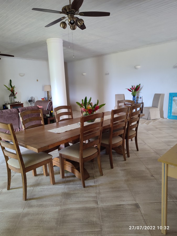 Sale of the property will include all furnishing and furniture at both upstairs apartments. The downstairs has a few pieces of furniture excluded but main furniture pieces will be included (a list will be provided). Property is located in middle to upper income area. Ocean view. Young Island and Grenadines islands view. Steps to the beach. Walking distance to main highway, restaurants, bar, gym, young island jetty Short driving to shopping, Capital Kingstown, Arnos vale shopping area and 20 minutes to the International airport (AIA) This property can be as a single family, an income investment and be converted into a apartment or a bed and breakfast.