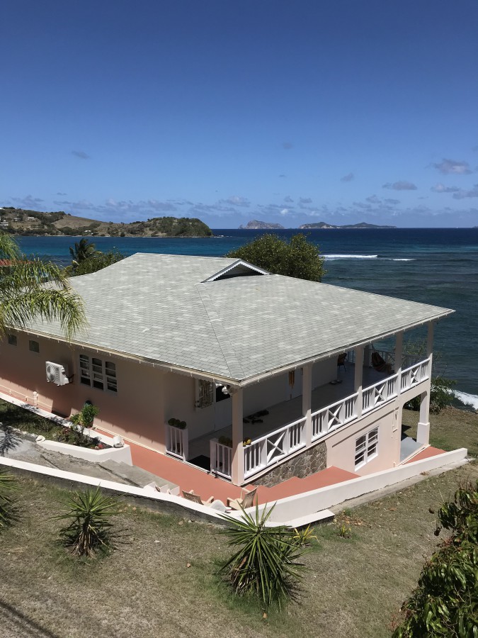 This property is an escape from the `rat race` of the big cities. This beautiful property sits directly on the Caribbean Sea. You have views of Sample Cay, Isle de Cote, Mustique, and many other small islands and cays looking south at the Grenadine chain of islands. The Windward breeze passed through the 3,631 square foot home keeping it cool and comfortable throughout the seasons. The home is surrounded by a 9 foot veranda, fruit trees and a landscaped lot of 11,802 square feet. The house has two living levels. The foundation is reinforced concrete, the roof has newly replaced asphalt shingles. The flooring is concrete slab covered by 3`X3` Italian ceramic tiles. The walls are a concrete block construction and the window frames are all hand designed in Greenheart wood.