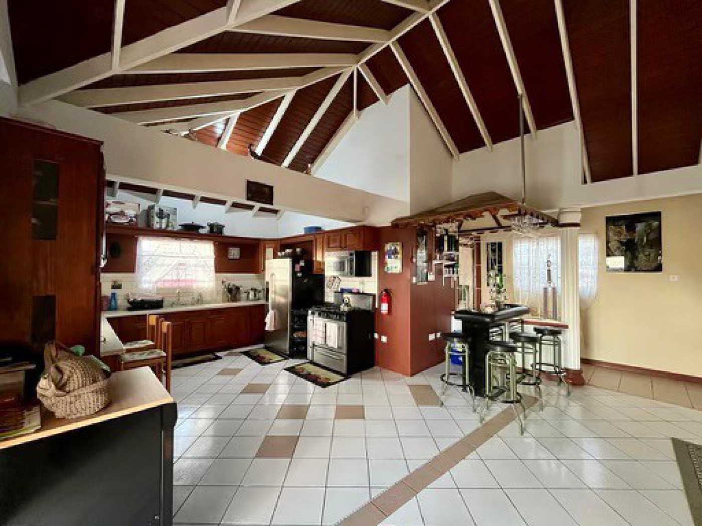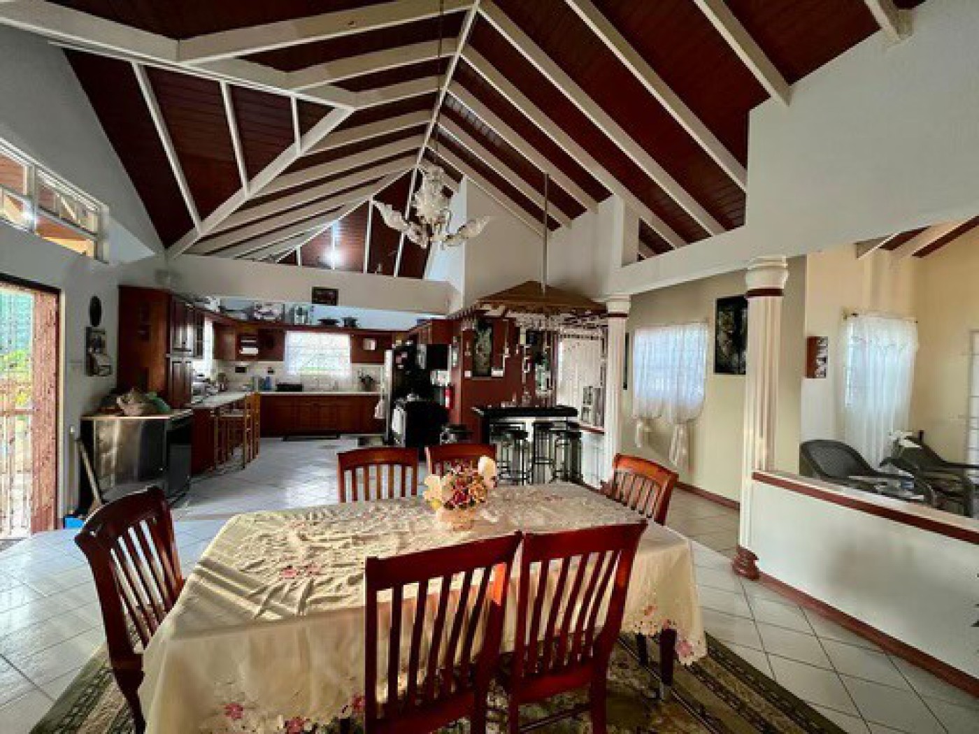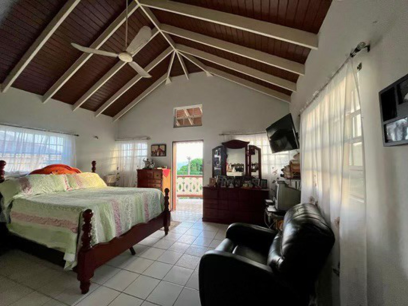 4000 sqft. 4 bedroom 2.5 bathroom. Master bedroom has 1 bathroom and jack and Jill bathroom between 2 br upstairs. Guest room downstairs, with a large living room and dinning room. 2 kitchens, one upstairs and one downstairs. Balcony for every room with seaside view.