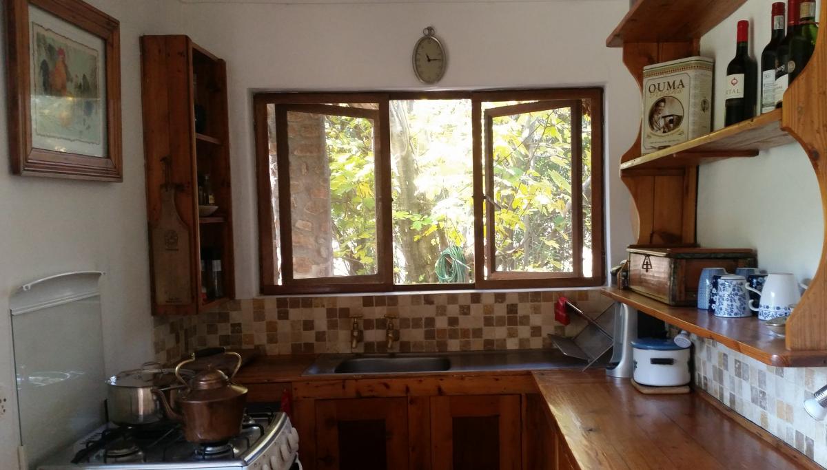 fireplace for cosy winter nights as well as a large partially enclosed veranda – perfect for when the whole family comes for lunch and you don`t feel like sitting in the house. Also on the property there are 2 quaint stone cottages and a granny flat, which can be rented out or used as self-catering units. Both cottages have a fireplace and the one has a large wooden deck veranda to enjoy a sun downer on while watching the birds get ready for the night and the kudu basking in the last rays of the sun.