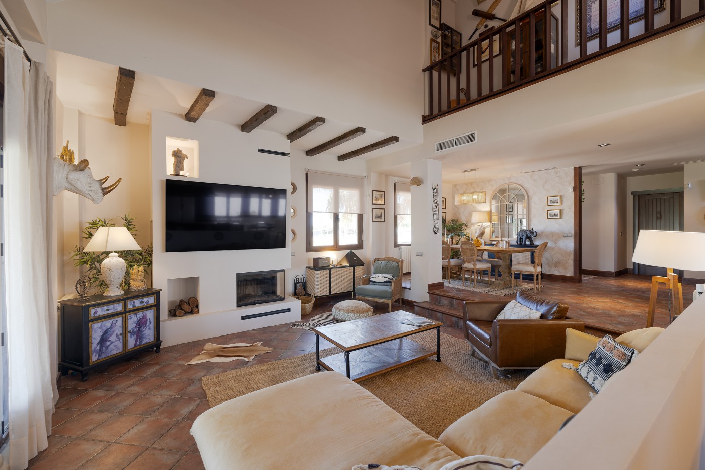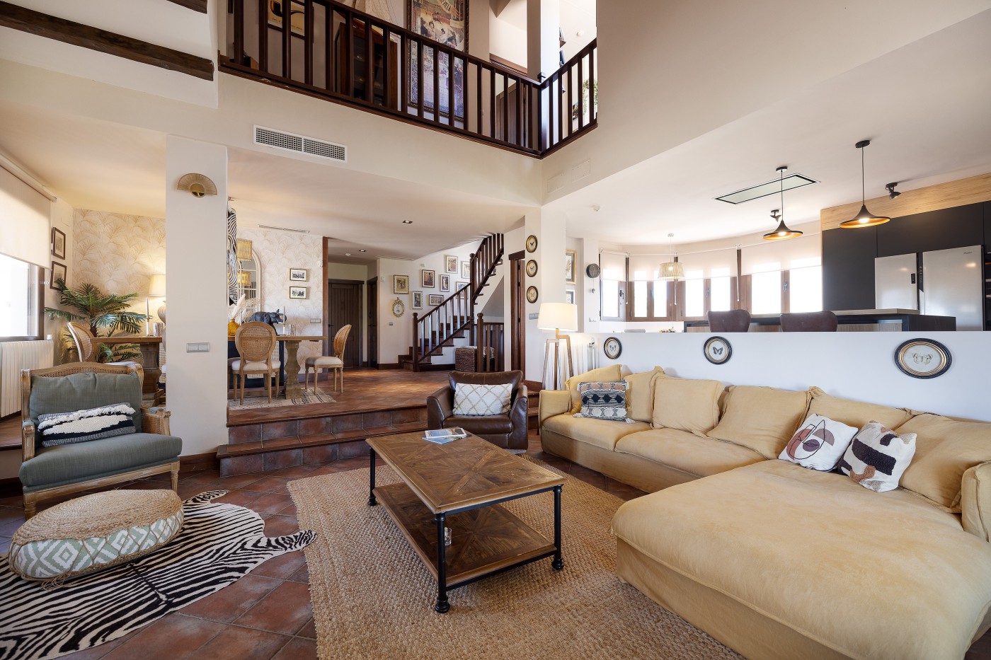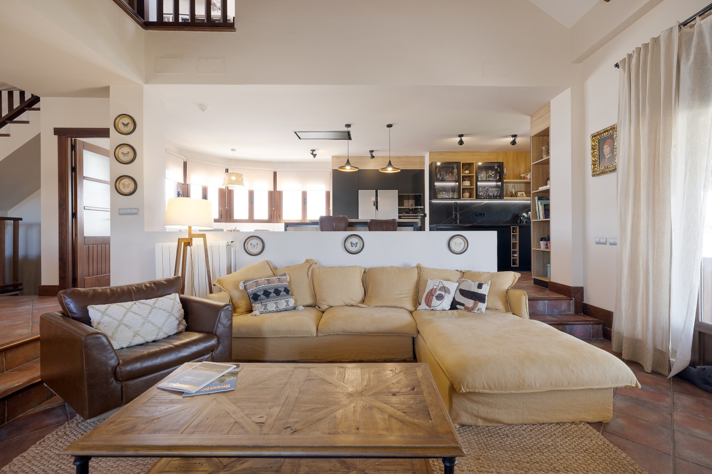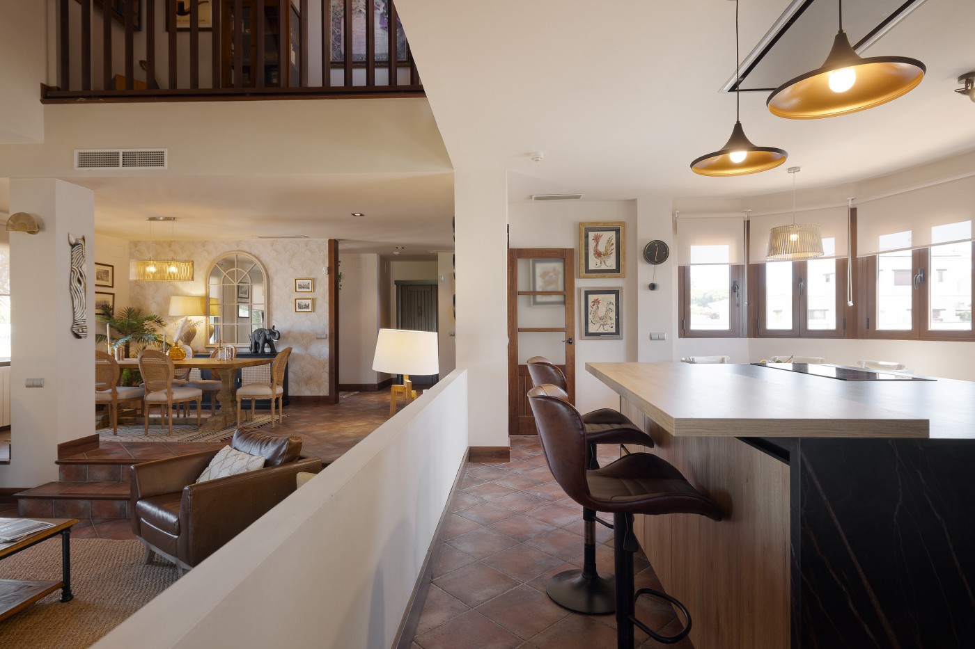 Magazine house in Urbanización La Juliana, 15 km away min from Seville and 40 min from Matalascañas or El Rocío. In a spectacular setting surrounded by pine forests, you will be able to enjoy the stunning light of the sunsets of the Aljarafe in one of the Further private urbanizations prestige in the Aljarafe. The house has 398 m2 built and 780 m2 of Plot with views impressive to a field of almond trees and the Aerodrome of the Juliana. It is distributed over one floor 161 m2 in which Its impressive Open concept living room with Italian design kitchen with Double-height ceilings. Equipped with fireplace firewood and 3 air rooms Centralized condition, the house was renovated to tell with air conditioning and Top-notch efficiency which also has radiators by means of Aerothermal and solar panels of 6Kw. On this same floor 3 En-suite rooms and a toilet courtesy, among which the following stand out his spectacular office of colonial decoration. On the first floor We found the Room master suite with dressing room custom, fan and Bioethanol fireplace, bathroom with double basin and high ceilings. More than 50 m2 of space in a room that could consider the Suite of any luxury hotel. It also has a terrace of more than 30 m2 with Stunning views of the field. The garden is home to trees fruit trees, palm trees, porch, 44mm artificial grass and a 40 m2 swimming pool with toilet and shower. As if all this were not enough, the house has a semi-basement of 144 m2, with 5 windows that give you give natural light and that distributed in a space of leisure area of more than 80 m2 with room film projection seventies inspiration, library, full bathroom, office, storage room and Dressing room space. It has exterior access, so that could be used as exempt apartment and even of vacation rentals. A house with a project unique decorative and ready to to enter to live with all the amenities, 2 minutes from British School of Seville, the Myland International School, the Suspended Forest or the Juliana Aerodrome. Do not hesitate and take advantage of this opportunity at a price irresistible because of its size and location, with the possibility in addition to subrogating to the current mortgage loan to fixed term of 1.1% being also an opportunity to Incredible investment. Spectacular House in La Juliana de Urbanization 398m2 and 780m2 of plot. Its impressive views of the field and La Ana Aerodrome Juliana they won t let you indifferent, counting also with a project of Interior design and decoration colonial that make it Surprisingly unique. The central concept space open has double height, in the which highlights its fireplace of Wood, Kitchen Design Italian Mitten with Top appliances quality (Haier and Siemens) even equipped with a wine cellar and Elica extractor inserted in the ceiling. It has 3 bedrooms in the main floor, all of them with bathroom and a toilet courtesy, with a dispatch of Colonial inspiration functional for teleworking. Indirect lighting creates a cozy and relaxing throughout the home, which together with wood and energy efficiency that has been achieved on the basis of its team of Aerothermal with radiators, its 6 Kw solar panels, the ceiling fans and the air-conditioned space with State-of-the-art inverter equipment generation in its three zones Centeralized, create a Life Balancing Set functional and relaxation of the life in the countryside. On the first floor we have an open space that houses The master bedroom en suite with dressing room and full bathroom with double sink and shower open space, a space that resembles a luxury hotel and with personality, accompanied in addition to functionalities like the air Acondionado, the ceiling fan or Bioethanol fireplace. We also have a terrace with views of the countryside and the sunsets of the Aljarafe de more than 30m2. As if all this were not enough, the house has a Semi-basement of 144 m2 with light natural through 5 windows in which highlights its wide leisure space with Entertainment Room Cinema, Library, Office and bathroom complete with shower. A mid-inspiration room Century perfectly insulated with rock wool and that maintains a temperature ideal all year round, even with Fan coil technology through the aerothermal energy. In addition, it has a space for Storage and dressing room of 50 m2 that could even become in the gym. The possibilities of this semi-basement are multiple, since that by having access to Independent from the outside could become Independent apartment. Finally, the garden provides the house of the necessary space for leisure and recreation, with Outdoor toilet and living room purifier, its 40-inch swimming pool m2, its fruit trees, palm trees, Olive tree, porch and views Stunning Tickets direct to the living room through French doors. In short: a house with 4 en-suite bedroom, 4 bathrooms and 2 bathrooms toilets, living room and kitchen Open concept, semi-basement of 144 m2 with leisure room and garden with swimming pool whose price is a real opportunity in a Private urbanization of prestige such as Juliana, with private security, areas of recreation and park, Social Club and together with the British College of Seville and Myland School International. In addition, its multiple roads, its proximity to Doñana, Matalascañas or the Rocío, the Aerodrome of the Juliana or the unique village of Bollullos de la Mitación de winemaking traditions make This house has everything you need necessary to live a placid country life just 15/20 min from Seville.