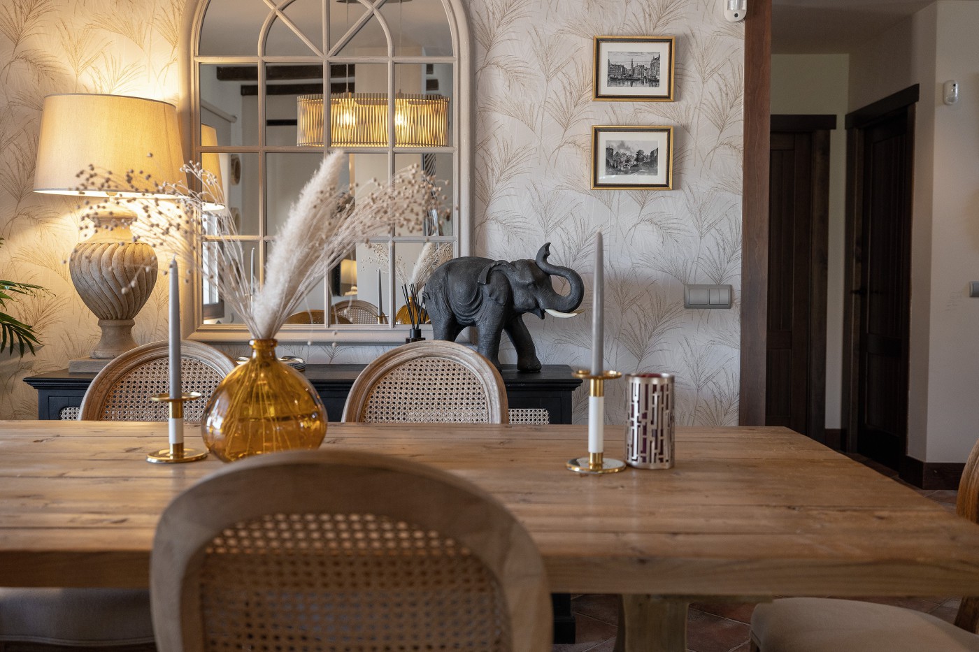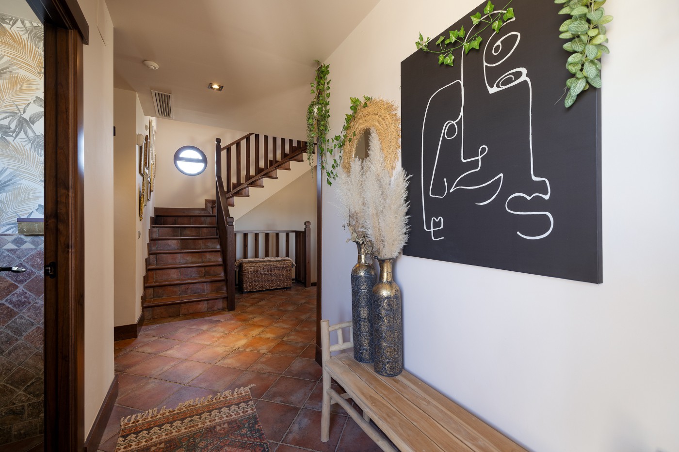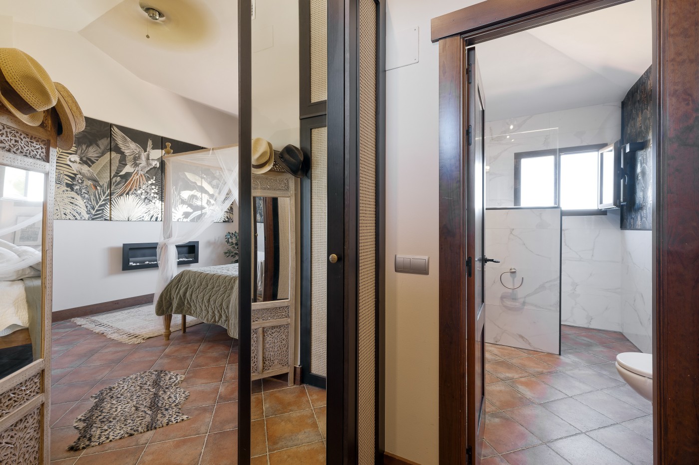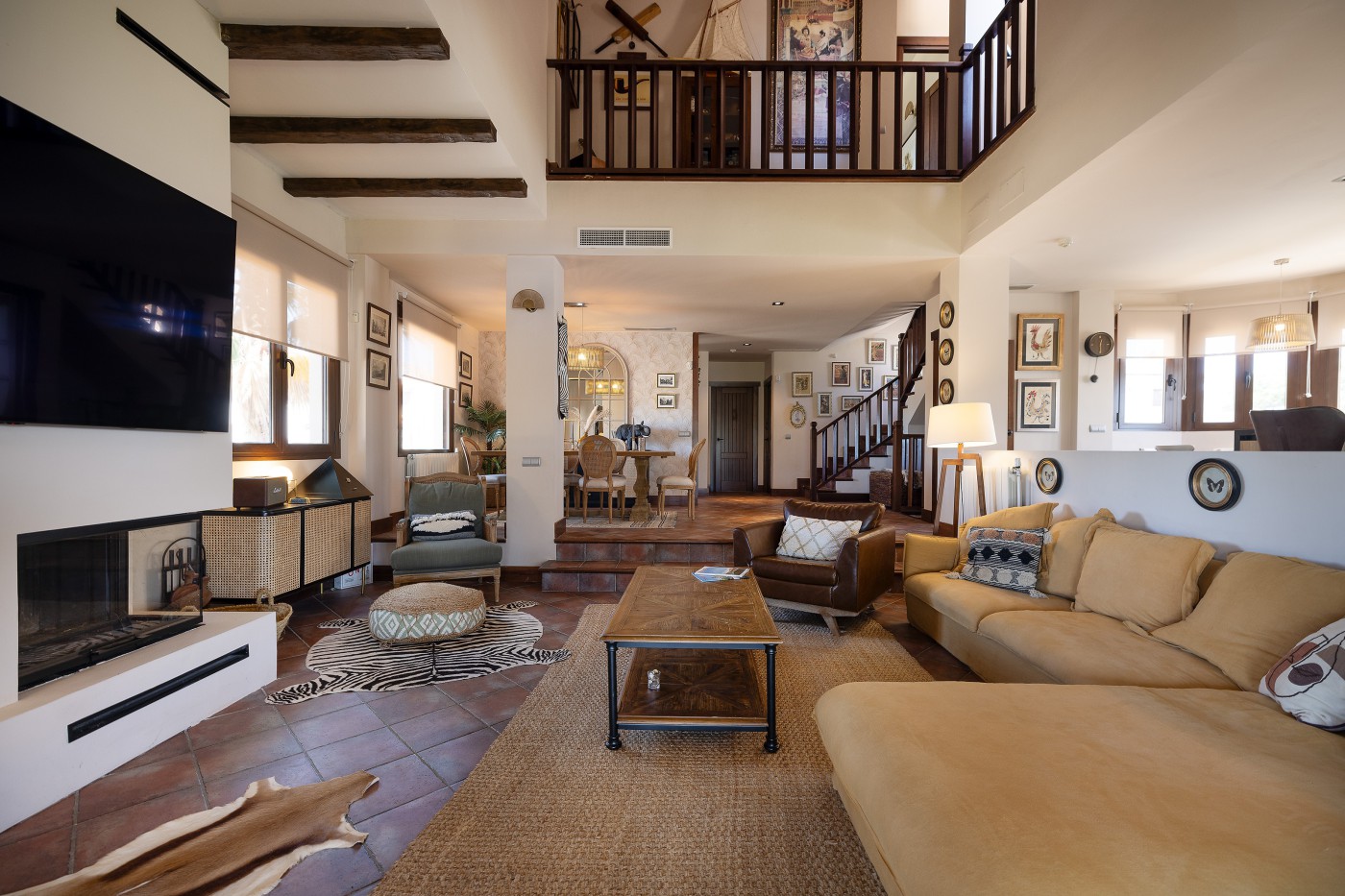Magazine house in Urbanización La Juliana, 15 km away min from Seville and 40 min from Matalascañas or El Rocío. In a spectacular setting surrounded by pine forests, you will be able to enjoy the stunning light of the sunsets of the Aljarafe in one of the Further private urbanizations prestige in the Aljarafe. The house has 398 m2 built and 780 m2 of Plot with views impressive to a field of almond trees and the Aerodrome of the Juliana. It is distributed over one floor 161 m2 in which Its impressive Open concept living room with Italian design kitchen with Double-height ceilings. Equipped with fireplace firewood and 3 air rooms Centralized condition, the house was renovated to tell with air conditioning and Top-notch efficiency which also has radiators by means of Aerothermal and solar panels of 6Kw. On this same floor 3 En-suite rooms and a toilet courtesy, among which the following stand out his spectacular office of colonial decoration. On the first floor We found the Room master suite with dressing room custom, fan and Bioethanol fireplace, bathroom with double basin and high ceilings. More than 50 m2 of space in a room that could consider the Suite of any luxury hotel. It also has a terrace of more than 30 m2 with Stunning views of the field. The garden is home to trees fruit trees, palm trees, porch, 44mm artificial grass and a 40 m2 swimming pool with toilet and shower. As if all this were not enough, the house has a semi-basement of 144 m2, with 5 windows that give you give natural light and that distributed in a space of leisure area of more than 80 m2 with room film projection seventies inspiration, library, full bathroom, office, storage room and Dressing room space. It has exterior access, so that could be used as exempt apartment and even of vacation rentals. A house with a project unique decorative and ready to to enter to live with all the amenities, 2 minutes from British School of Seville, the Myland International School, the Suspended Forest or the Juliana Aerodrome. Do not hesitate and take advantage of this opportunity at a price irresistible because of its size and location, with the possibility in addition to subrogating to the current mortgage loan to fixed term of 1.1% being also an opportunity to Incredible investment. Spectacular House in La Juliana de Urbanization 398m2 and 780m2 of plot. Its impressive views of the field and La Ana Aerodrome Juliana they won t let you indifferent, counting also with a project of Interior design and decoration colonial that make it Surprisingly unique. The central concept space open has double height, in the which highlights its fireplace of Wood, Kitchen Design Italian Mitten with Top appliances quality (Haier and Siemens) even equipped with a wine cellar and Elica extractor inserted in the ceiling. It has 3 bedrooms in the main floor, all of them with bathroom and a toilet courtesy, with a dispatch of Colonial inspiration functional for teleworking. Indirect lighting creates a cozy and relaxing throughout the home, which together with wood and energy efficiency that has been achieved on the basis of its team of Aerothermal with radiators, its 6 Kw solar panels, the ceiling fans and the air-conditioned space with State-of-the-art inverter equipment generation in its three zones Centeralized, create a Life Balancing Set functional and relaxation of the life in the countryside. On the first floor we have an open space that houses The master bedroom en suite with dressing room and full bathroom with double sink and shower open space, a space that resembles a luxury hotel and with personality, accompanied in addition to functionalities like the air Acondionado, the ceiling fan or Bioethanol fireplace. We also have a terrace with views of the countryside and the sunsets of the Aljarafe de more than 30m2. As if all this were not enough, the house has a Semi-basement of 144 m2 with light natural through 5 windows in which highlights its wide leisure space with Entertainment Room Cinema, Library, Office and bathroom complete with shower. A mid-inspiration room Century perfectly insulated with rock wool and that maintains a temperature ideal all year round, even with Fan coil technology through the aerothermal energy. In addition, it has a space for Storage and dressing room of 50 m2 that could even become in the gym. The possibilities of this semi-basement are multiple, since that by having access to Independent from the outside could become Independent apartment. Finally, the garden provides the house of the necessary space for leisure and recreation, with Outdoor toilet and living room purifier, its 40-inch swimming pool m2, its fruit trees, palm trees, Olive tree, porch and views Stunning Tickets direct to the living room through French doors. In short: a house with 4 en-suite bedroom, 4 bathrooms and 2 bathrooms toilets, living room and kitchen Open concept, semi-basement of 144 m2 with leisure room and garden with swimming pool whose price is a real opportunity in a Private urbanization of prestige such as Juliana, with private security, areas of recreation and park, Social Club and together with the British College of Seville and Myland School International. In addition, its multiple roads, its proximity to Doñana, Matalascañas or the Rocío, the Aerodrome of the Juliana or the unique village of Bollullos de la Mitación de winemaking traditions make This house has everything you need necessary to live a placid country life just 15/20 min from Seville.