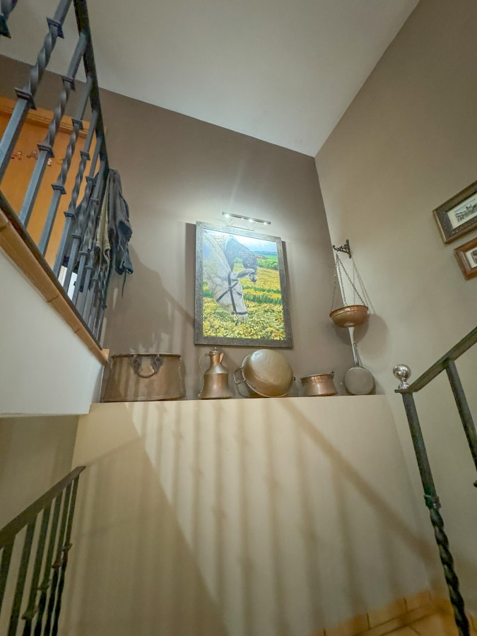 On the upper floor, we find a large landing that overlooks the living room and two bedrooms, both with an