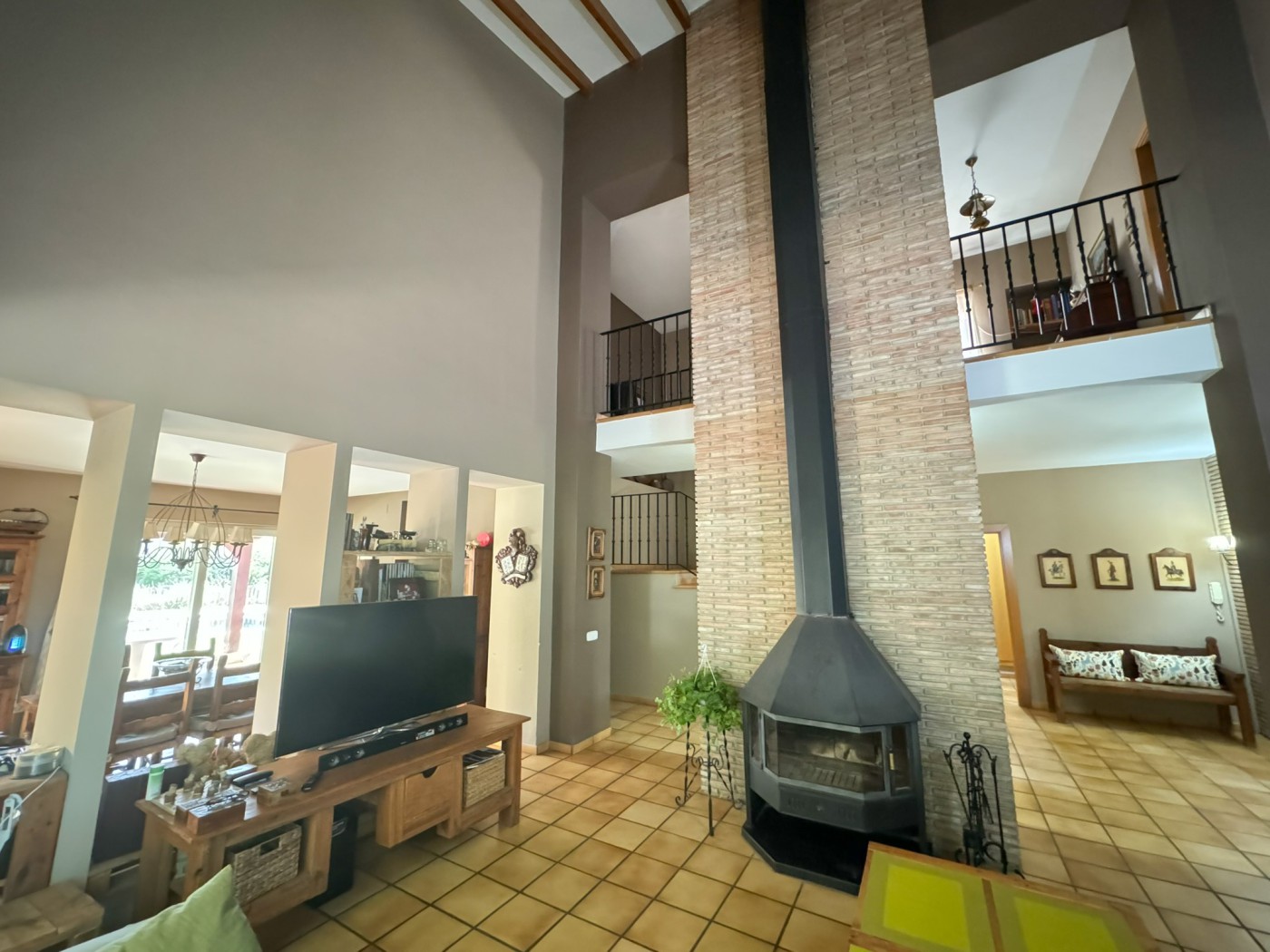 The house is distributed in a large hall, a beautiful living room with double-height ceilings with wooden