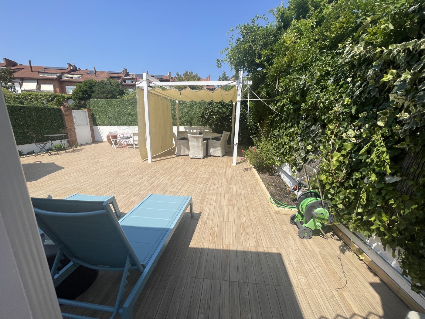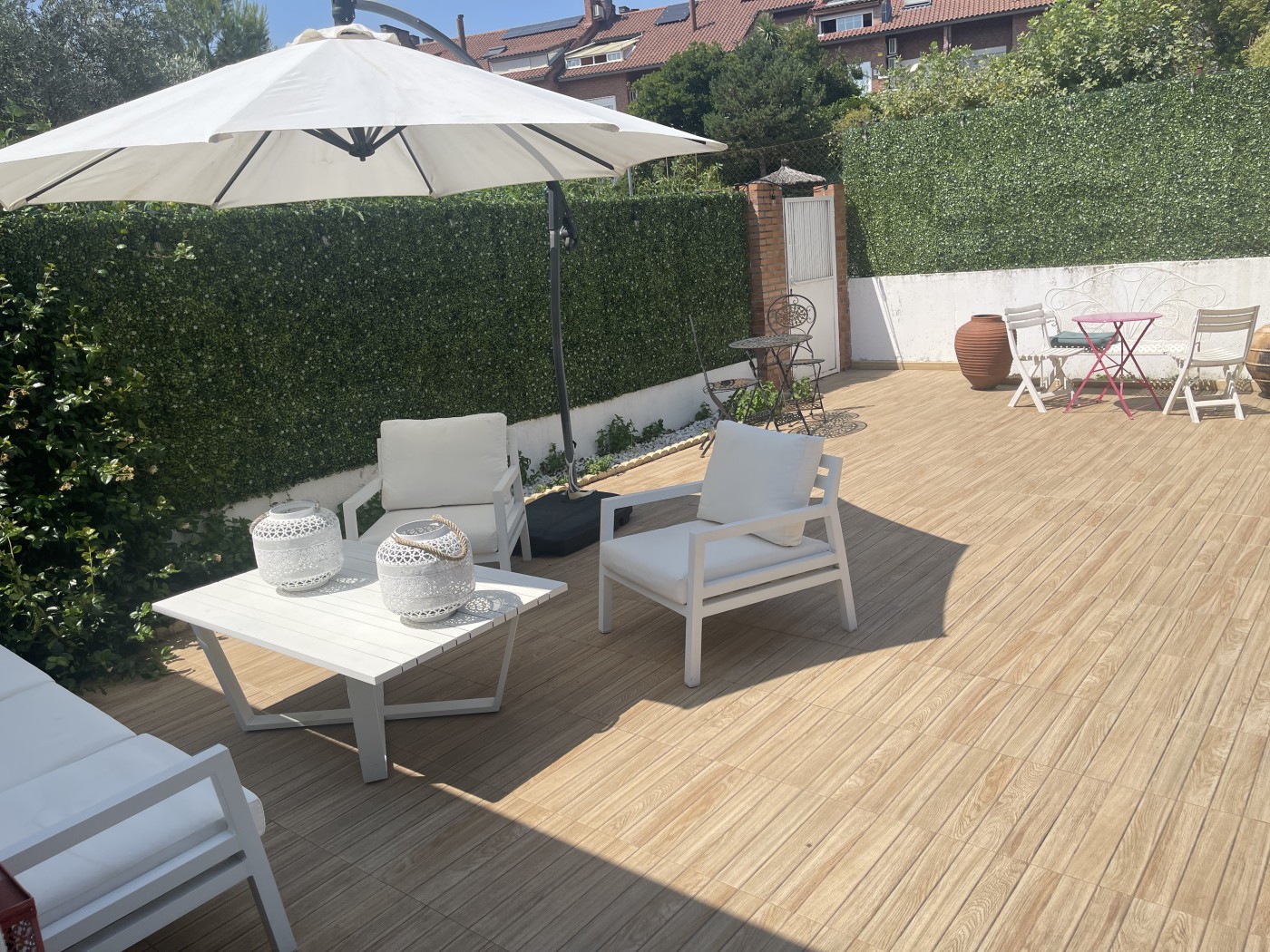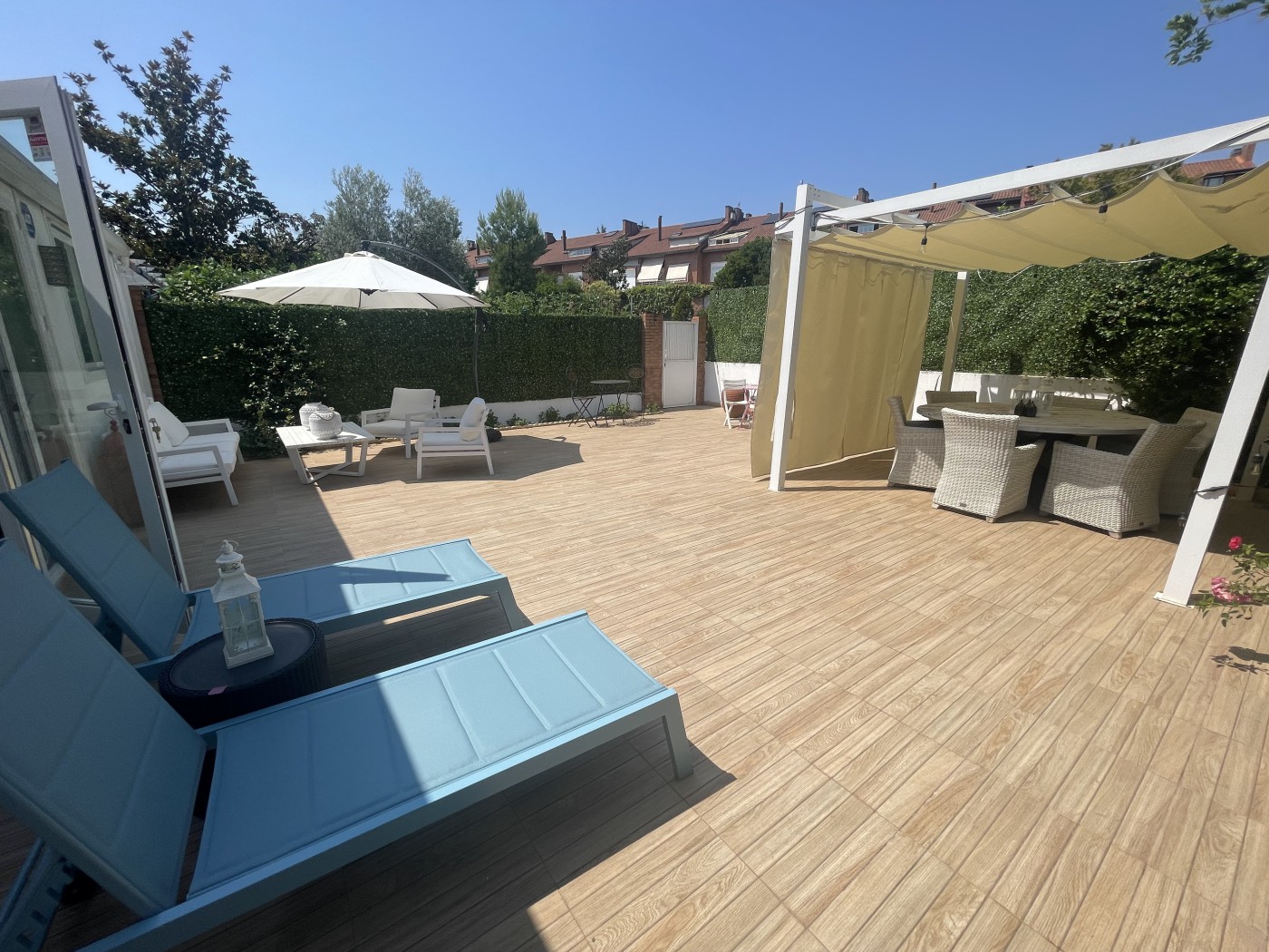 La vivienda cuenta con 380 metros cuadrados y se encuentra construida sobre una parcela de 241 metros cuadrados, perfectamente cuidada y situada dentro de una urbanización con jardines y piscina que se accede desde el jardÃn privado de la propiedad.