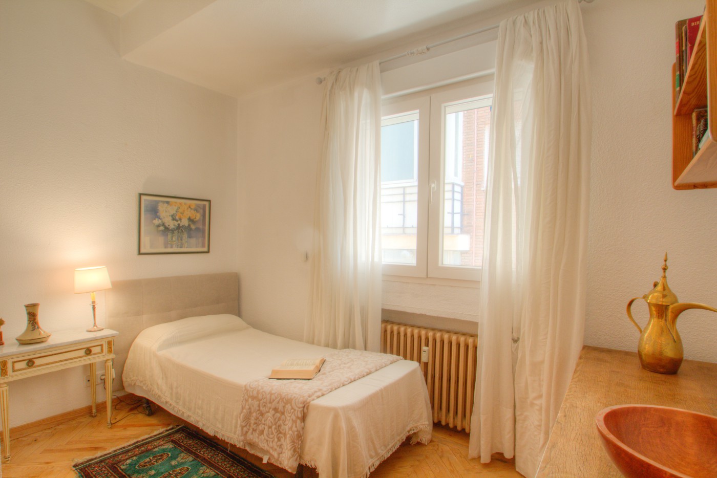 Bright and spacious 5th floor for sale in one of the best areas of Madrid, with perfect orientation towards the low-rise houses in the best residential neighborhood in Madrid. With windows to the north and east it achieves cross ventilation. It has three bedrooms, a spacious living room, a dining room attached to the liv...