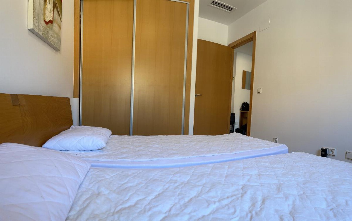 The apartment has two bright bedrooms. The master includes an en-suite bathroom, while the second