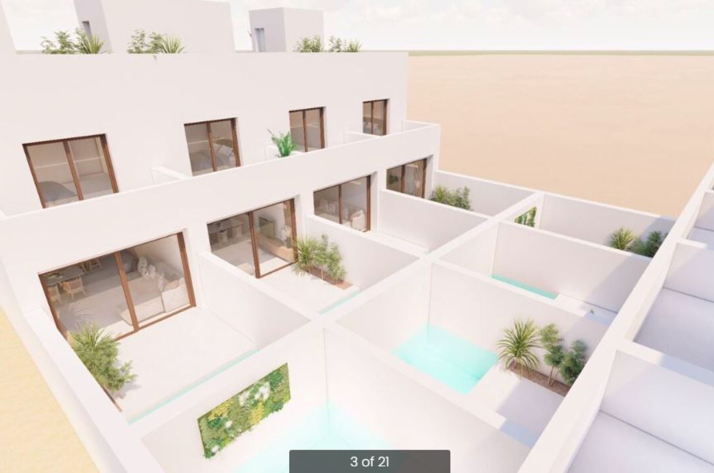 Residential Carmen IV is a complex composed of 3 townhouses, with a private pool, a terraced area, and a