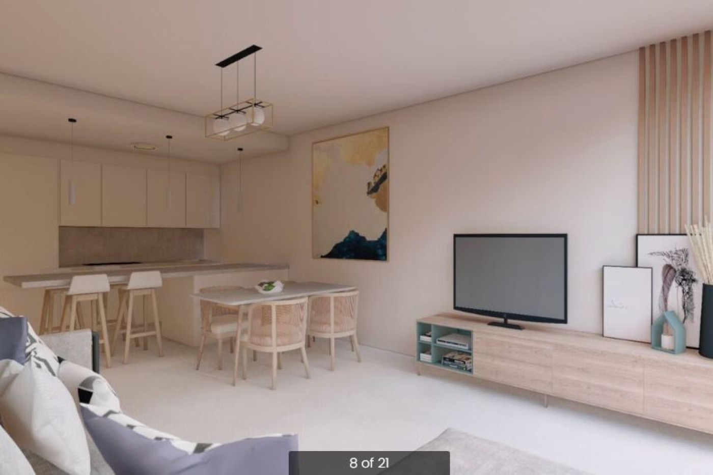 plan concept, comprising a fully-fitted kitchen and lounge-dining room.