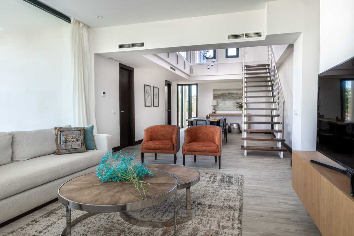 - High-quality stone finishes and flat roofs