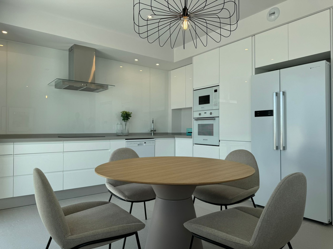 Open-plan living room connected to the fully equipped kitchen (high-end appliances