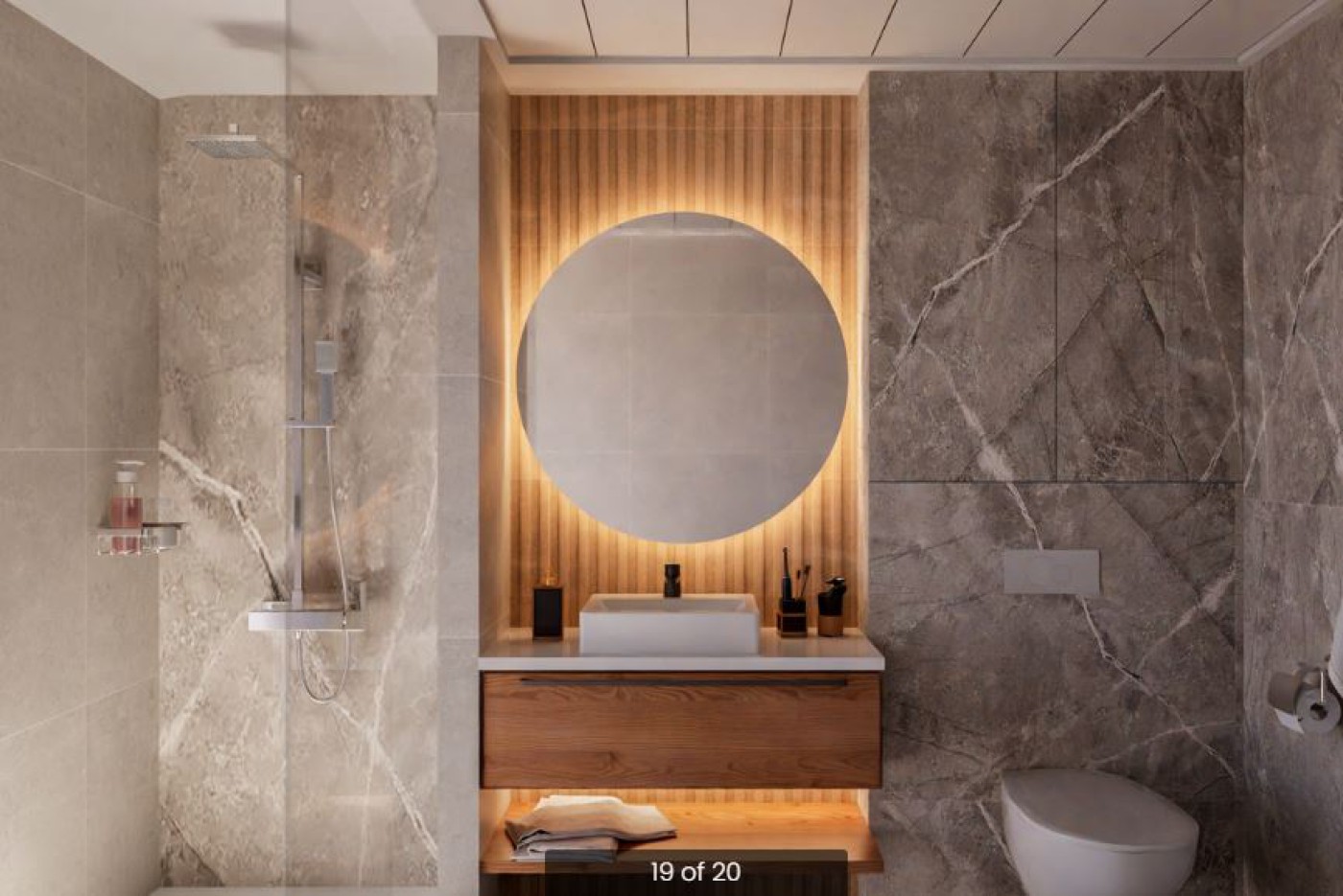 - Stylish bathrooms with vanity units and lighting