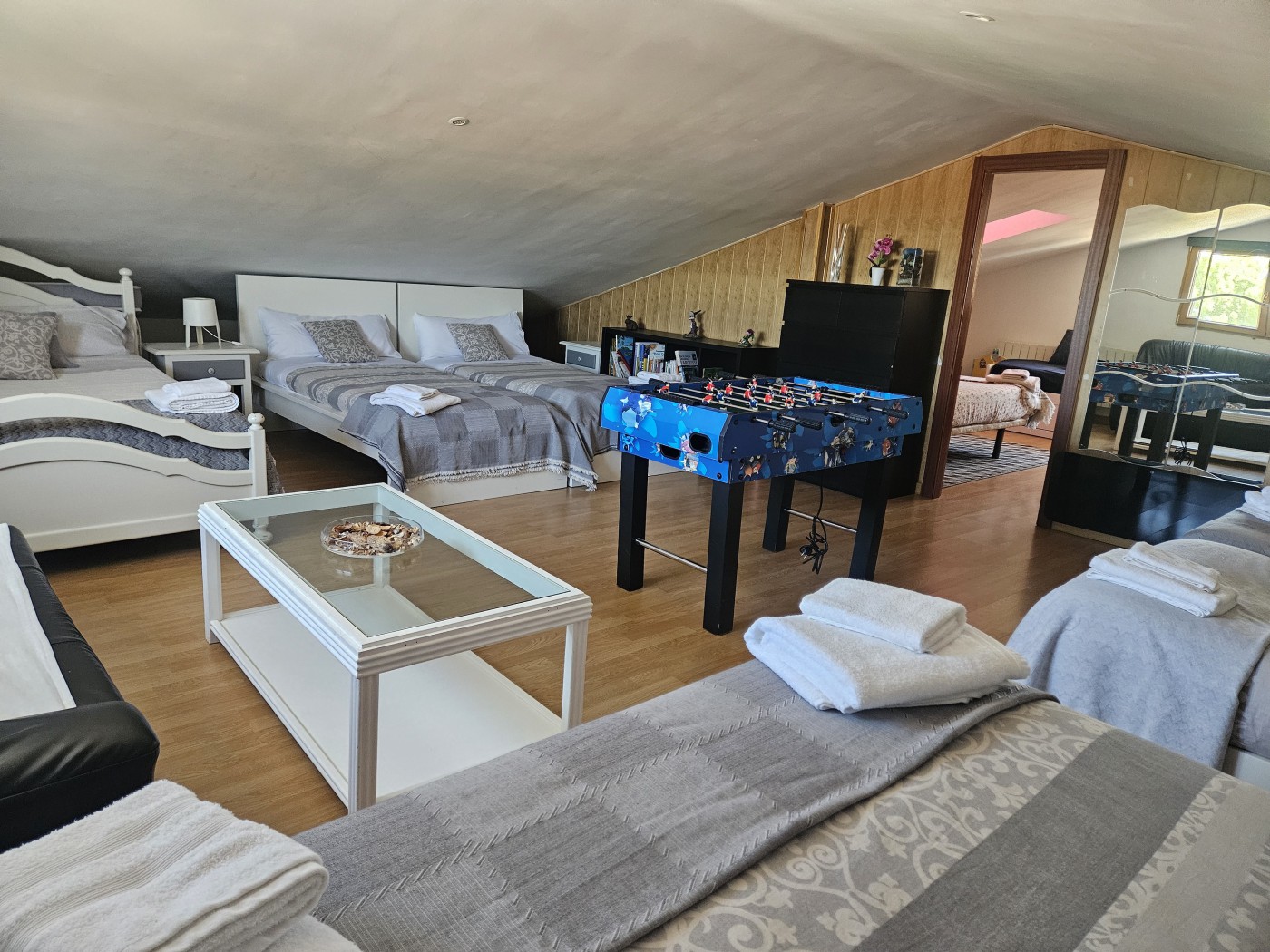 - Attic space with six beds