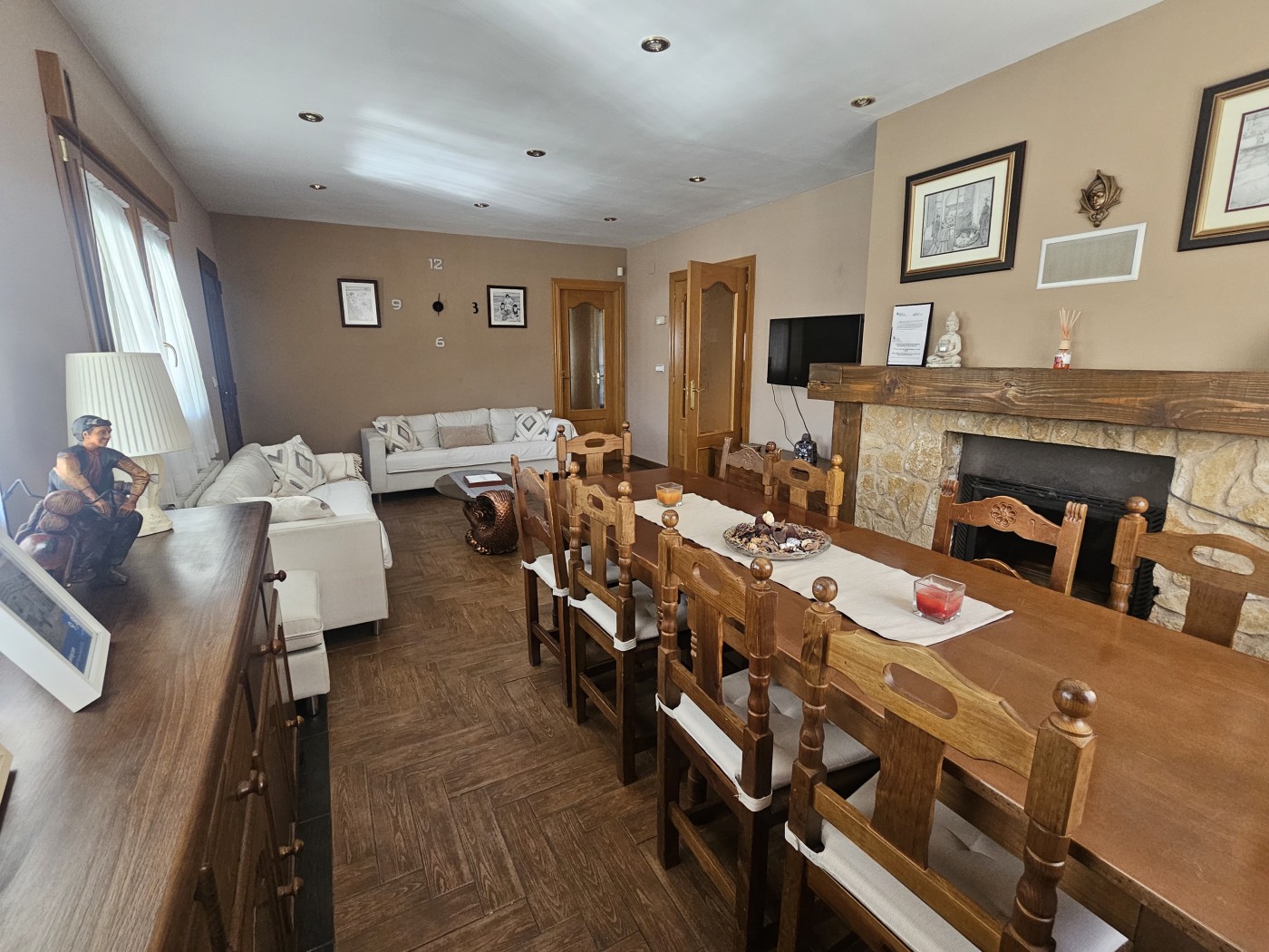 La planta baja es un verdadero refugio para el entretenimiento y la relajación. El salón con chimenea