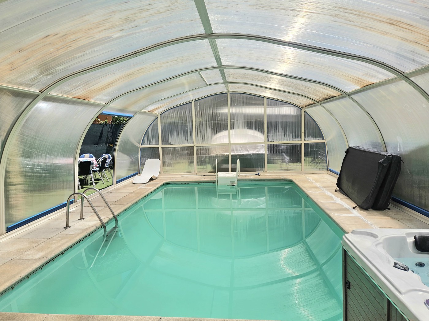 espectacular piscina cubierta que puedes disfrutar durante todo el año, junto con un jacuzzi y una sauna