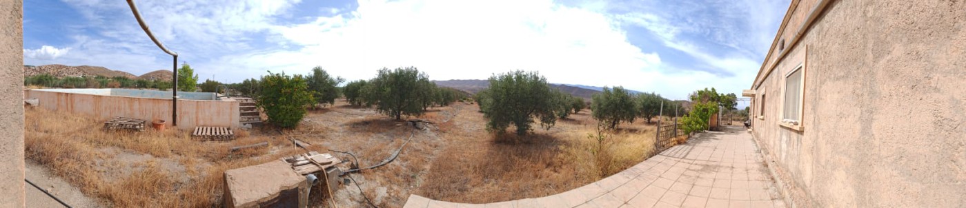 Spacious single-storey villa located in the peaceful desert surroundings of Tabernas, Almería. The property offers 200 m² of living space, featuring four bedrooms, three bathrooms, a large living-dining room, and a separate kitchen-dining area. The home includes a private garage for two vehicles and a beautifully maintained garden with 200 mature trees, offering shade and privacy.