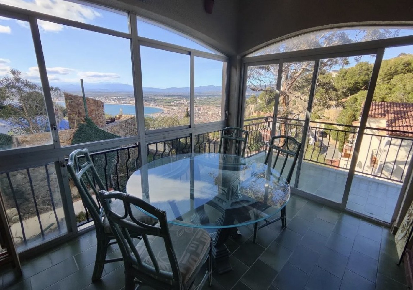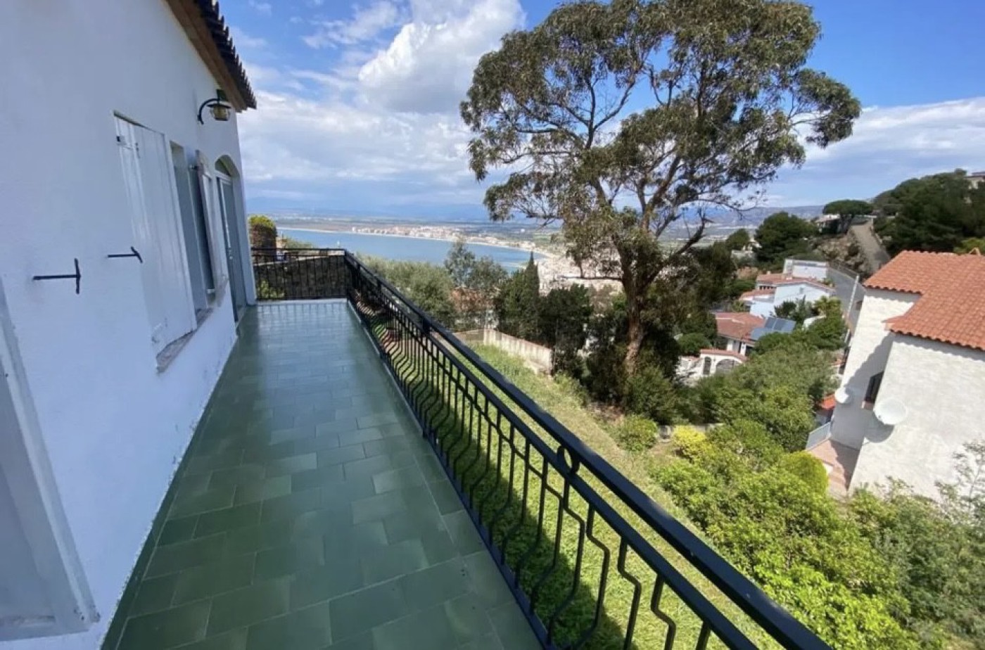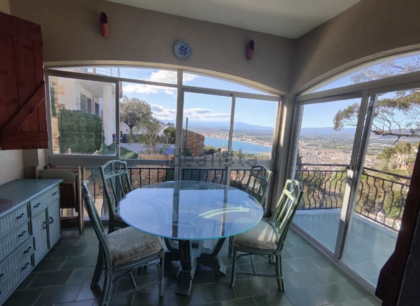 Au 1er étage vous trouverez un immense salon salle à manger avec terrasse et vue sur la baie de Rosas, une spacieuse cuisine, une chambre double et une salle de bain.