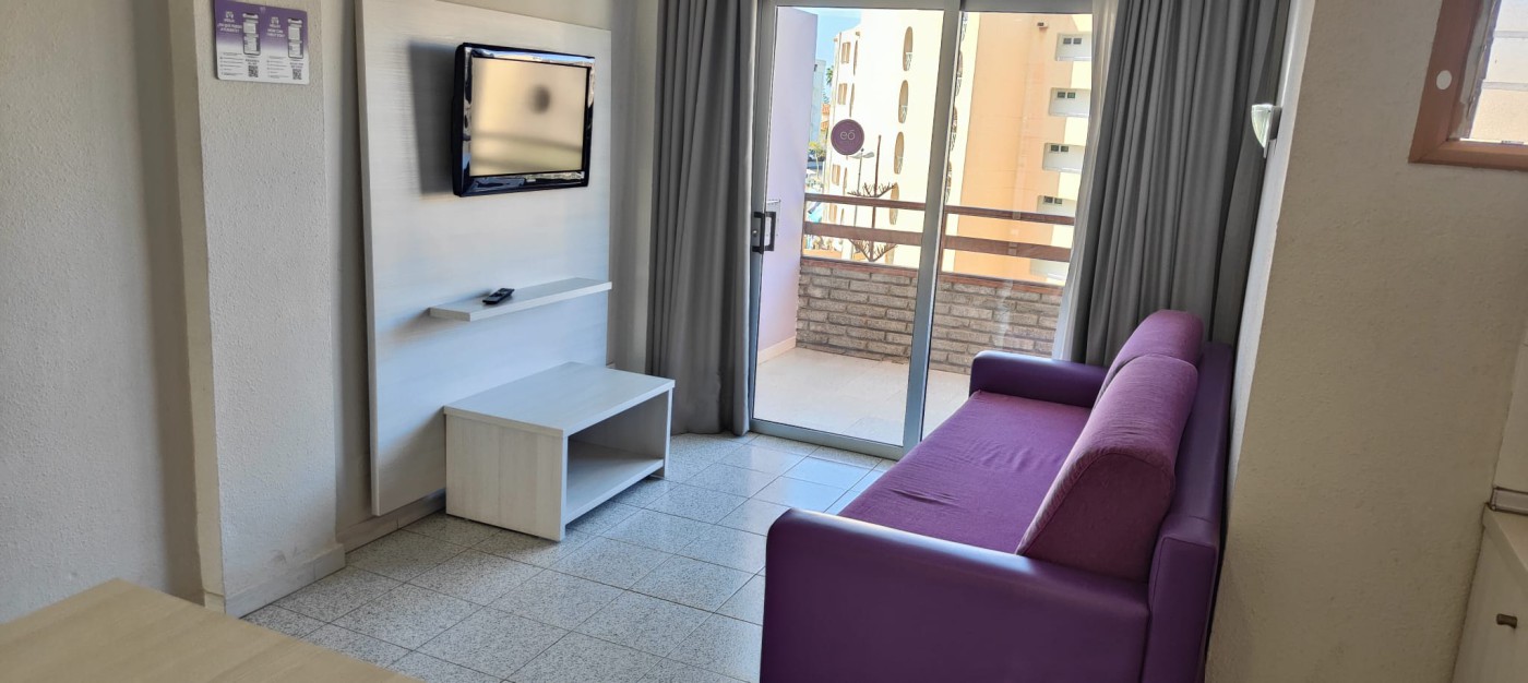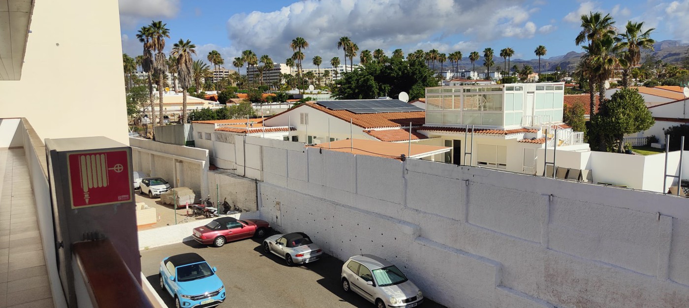 Good afternoon. Apartment in Playa del Inglés, Gran Canaria. 4th floor. Elevator. 38 square meters, of which 32 are living space, the remaining 6 are terrace. Garage. Two-minute walk from the Yumbo Shopping Center.