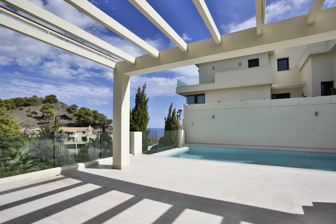 Surrounded by nature and situated next to a prestigious golf course, this property perfectly combines elegance, contemporary design, and breathtaking panoramic views of the sea and mountains.