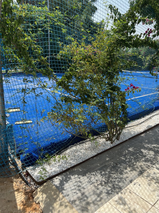 It has a tennis court with night