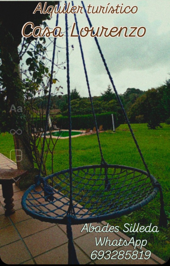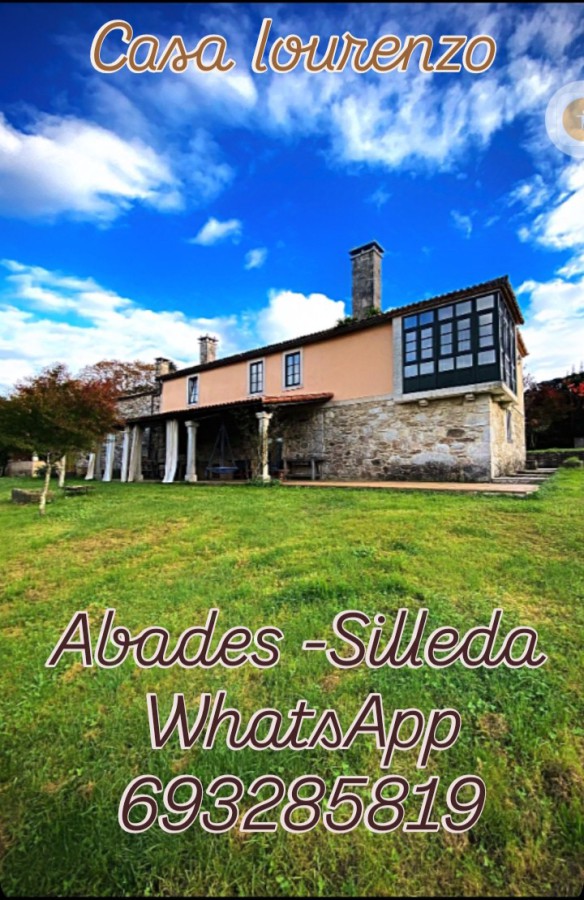 Cuenta con 2 cocinas, 2 salas de estar, un despacho, una bodega, 5 dormitorios, un porche con churrasquera, un horreo de piedra, un cobertizo con capacidad para 4 coches, una piscina y una fuente con estanque.